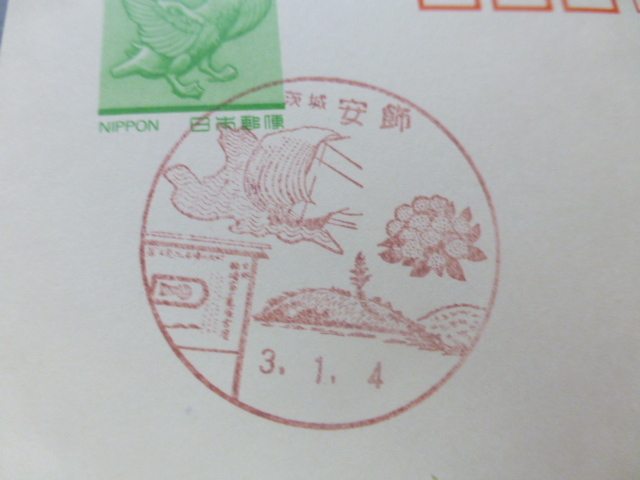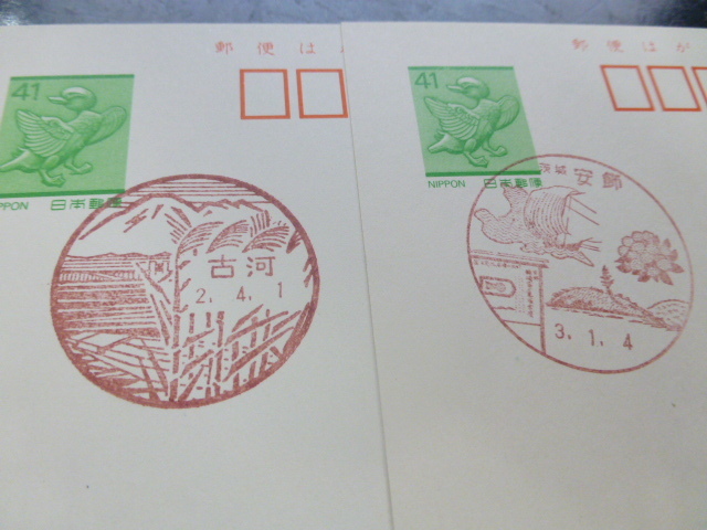 鳥獣はがき 初日風景印 茨城2枚 古河・安飾
