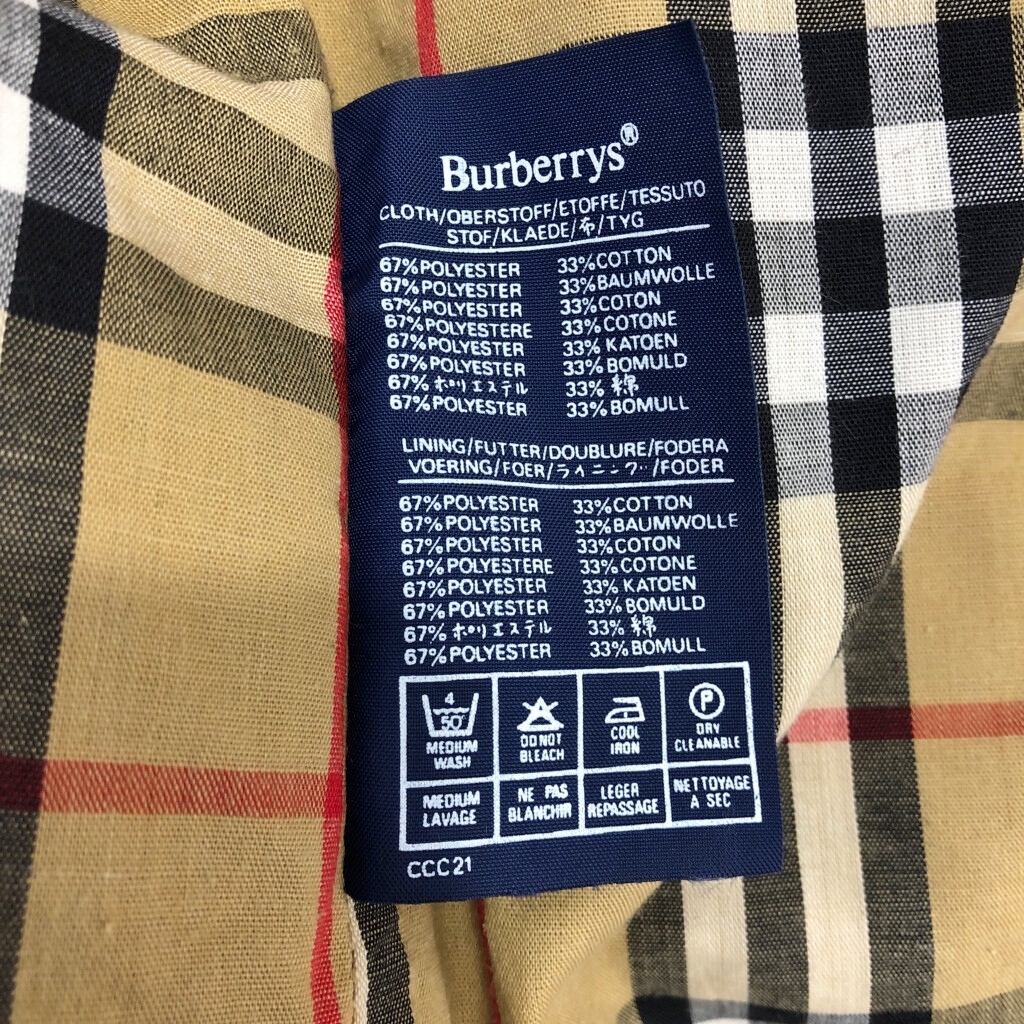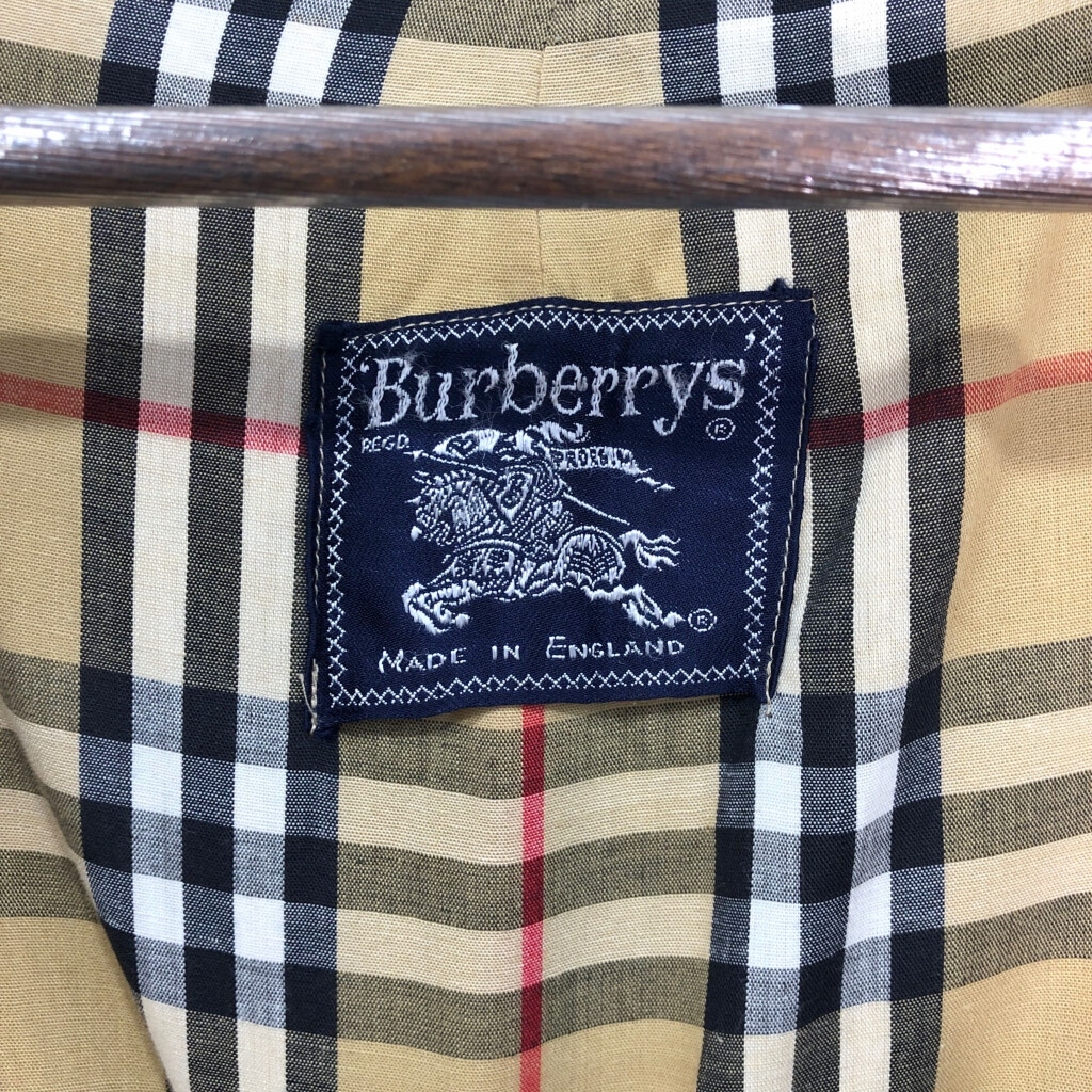 | 【商品管理番号】 R6703 【ブランド】 Burberrys/バーバリーズ 【サイズ】 S相当 【実寸サイズ】 着丈:約111cm 身幅:約60cm 裄丈:約78cm 袖下丈:約45cm 【主な素材】 表地 : ポリエステル 裏地 : 13897 【色】 ベージュ 【仕様】 生産国 : イングランド製 80年代 【状態】 汚れ:胸、背中 特記事項:ボタン欠損 ベルト欠損 | |||