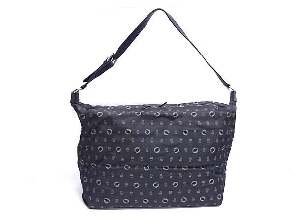 1円 ■美品■ HUNTING WORLD ハンティングワールド キャンバス×レザー 総柄 ショルダーバッグ トラベルバッグ ネイビー系 GA6159