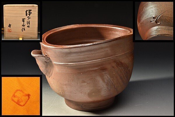 S U06683 藤原啓 備前 片口 水指 茶道具 共箱 /SSS