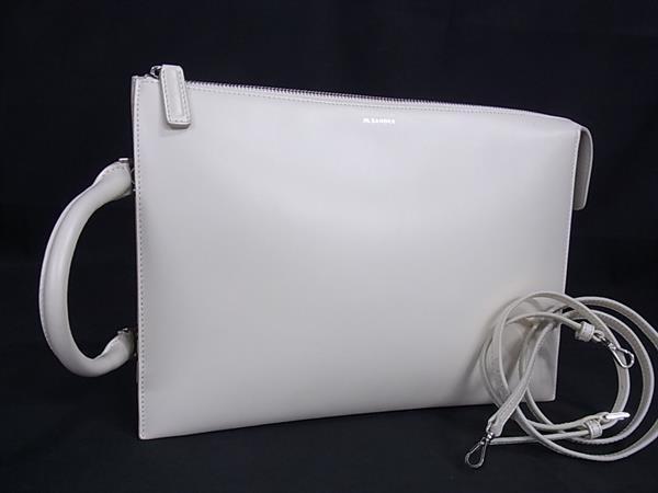 1円 ■美品■ JIL SANDER ジルサンダー トゥーティー レザー 2WAY クロスボディ ハンドバッグ ショルダー 斜め掛け アイボリー系 EA3434