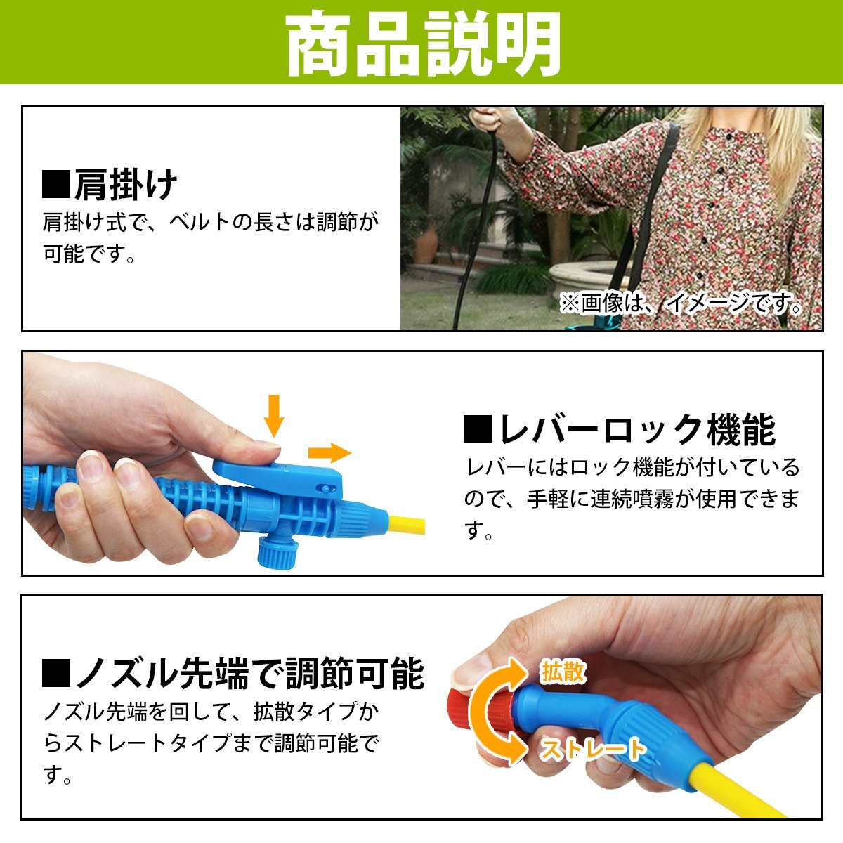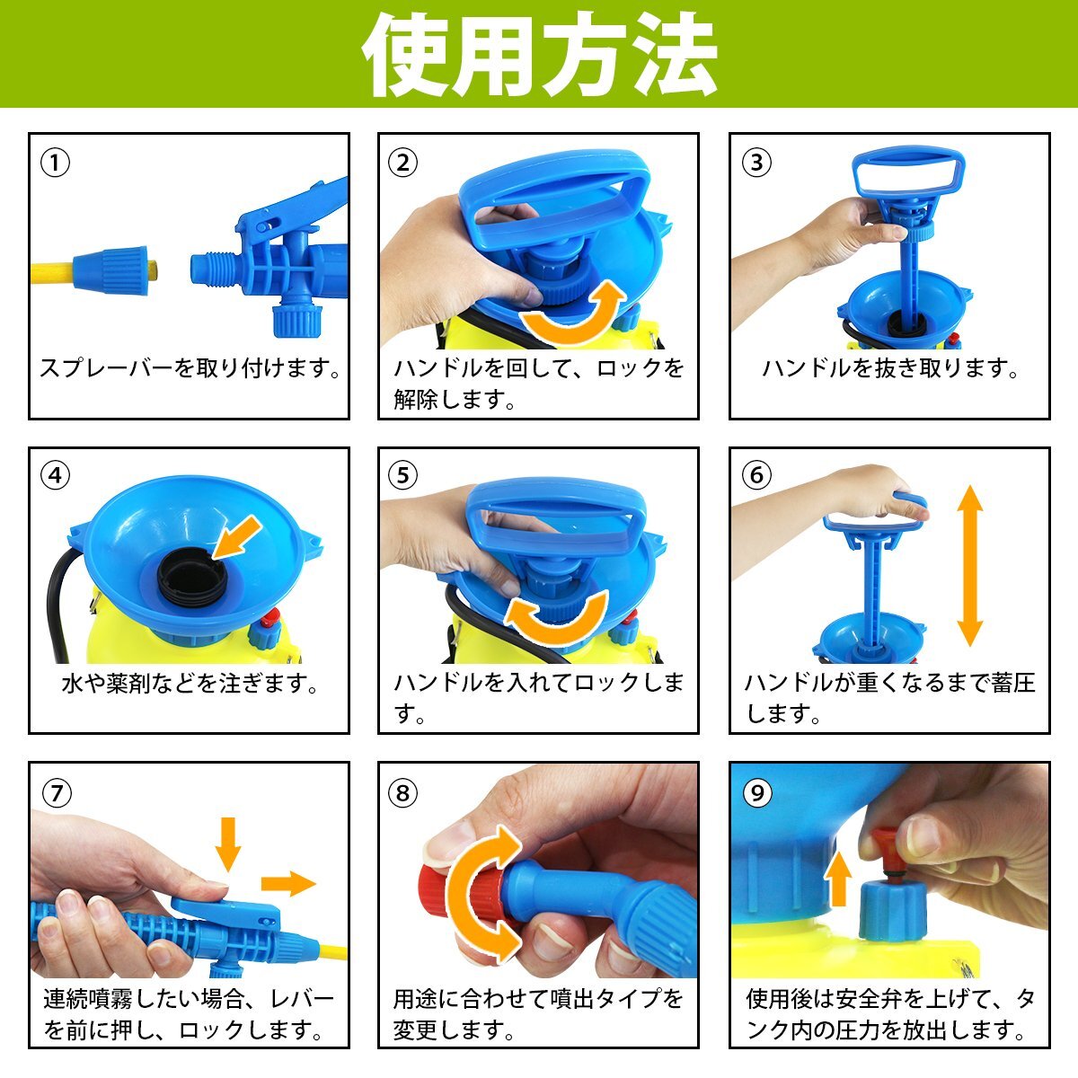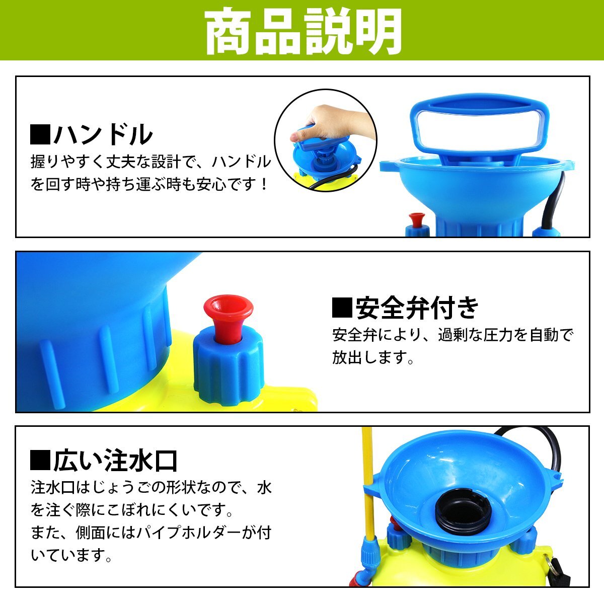 5L 手動式 蓄圧式 噴霧器 スプレー 肩掛け 連続噴霧 ノズル先端調節可能 殺虫 農薬 除草剤 園芸 ガーデニング 花壇 園芸 洗車
