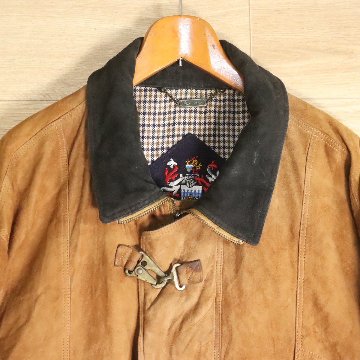 B1O/Y5.16-3 イギリス製 Aquascutum アクアスキュータム 本革 革ジャン 皮ジャン スエードレザージャケット ファイヤーマン
