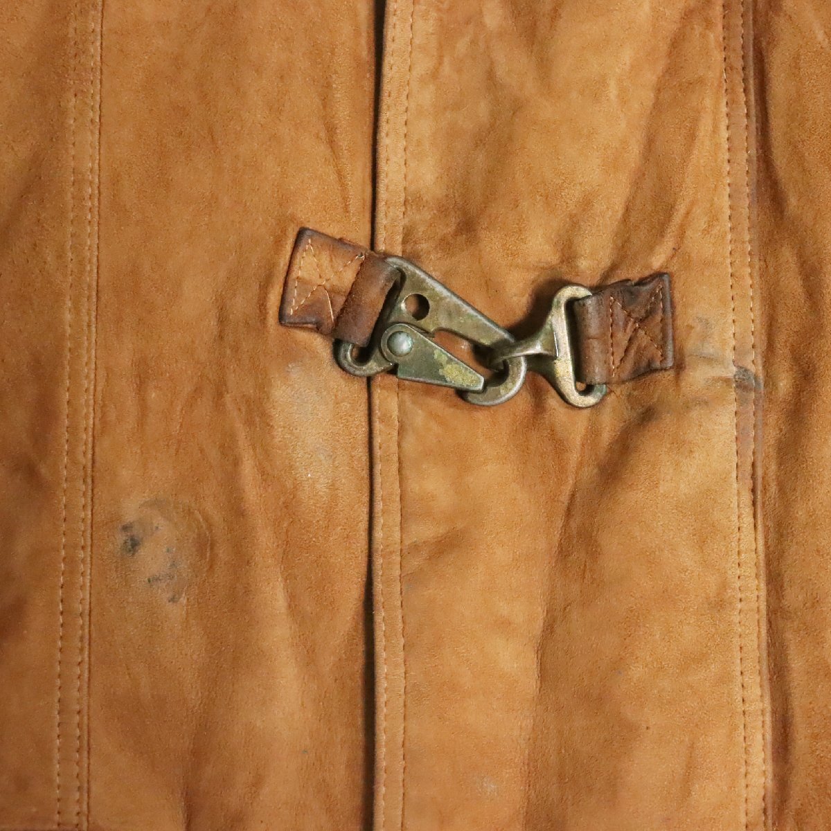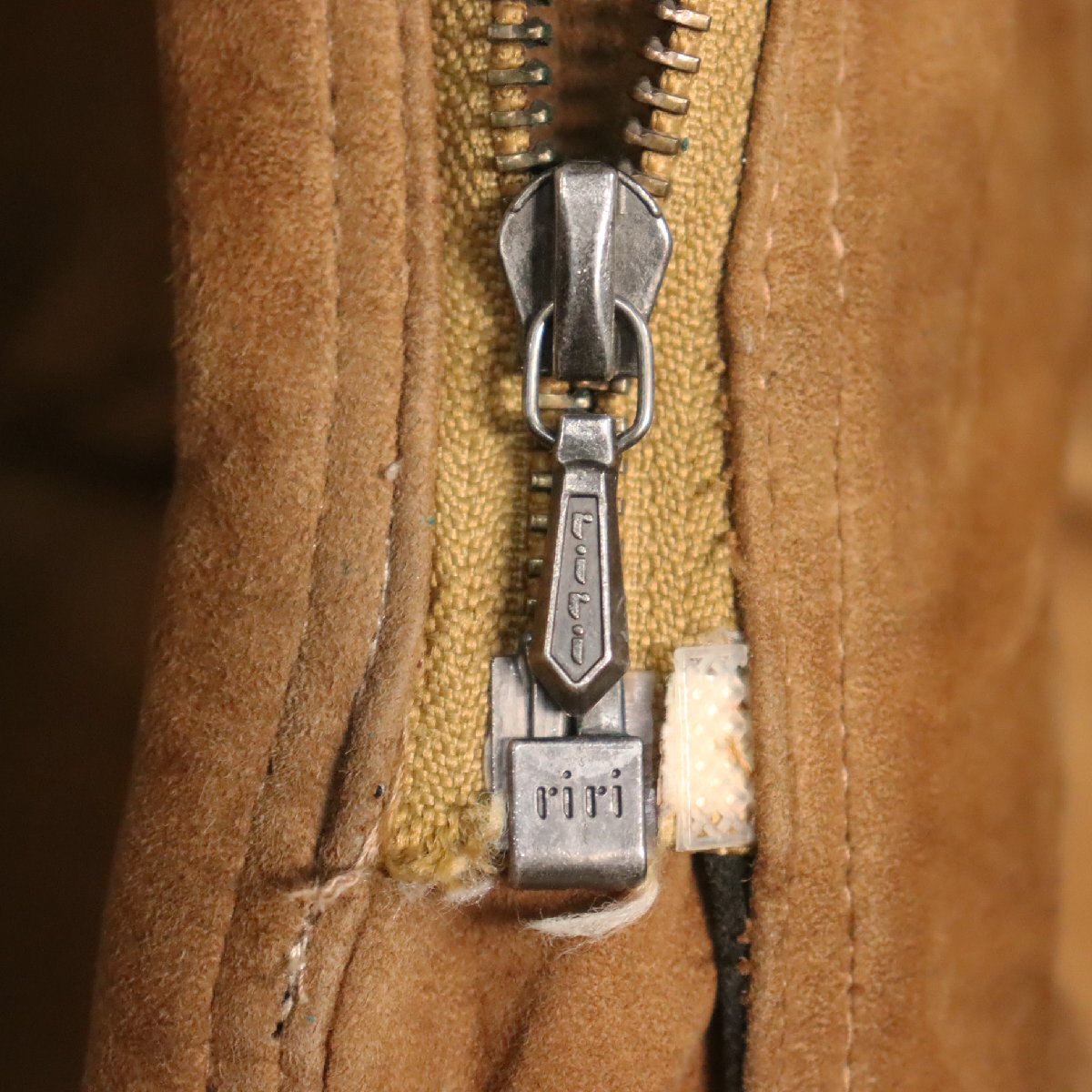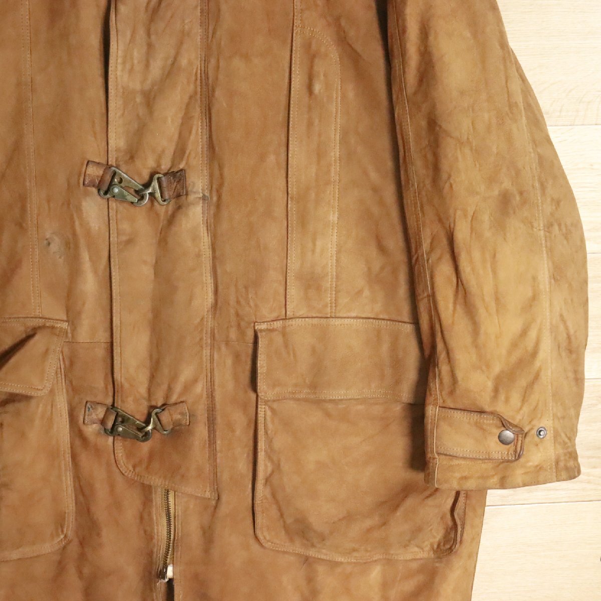中古品です。使用感があります。全体の各所にスエード素材特有の擦れと汚れ、襟に擦れがありますが、他に大きなダメージはありません。フードは付属していません。