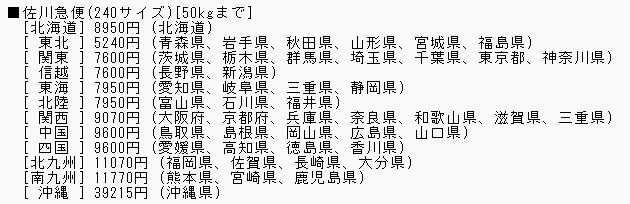 请参考商品网页上的说明,若无说明,一般普通3KG左右的普通件700日元左右,超大件2000日元至1万日元不等。下单前有疑问的请咨询客服。