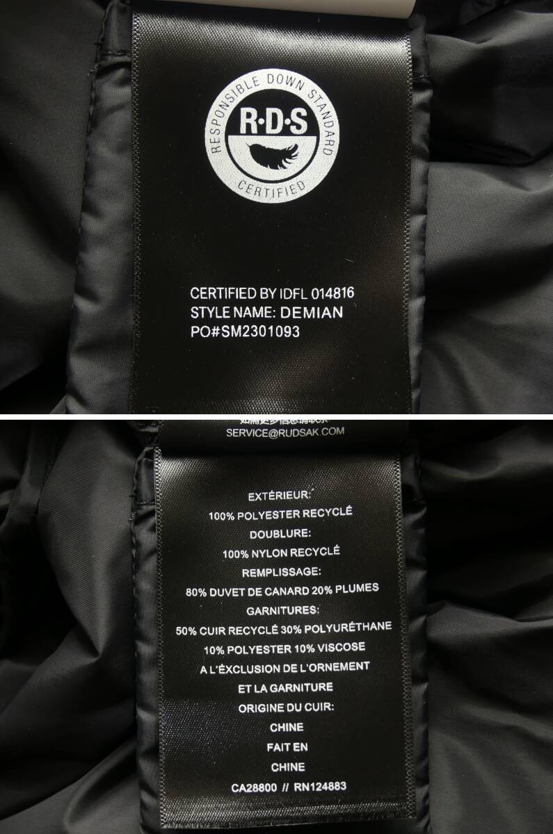 1994年カナダはモントリオール創業のアウターウェアブランド「RUDSAK ルドサック」。おそらく皆さまご存じの無いアンノウンブランドと思います。ルドサックは昨年が創業30周年にして未だ日本未入荷ブランド。30年で未だアンノウンとは情報社会の現代において少し驚きもありますが、それには理由があります。ルドサックは今も創業者経営のファミリービジネスで、エポックメイキングというと大げさな表現になりますが生産数量が限られたアウターメーカーです。特に高品質ダウンジャケットとレザージャケットの評価が高く、全てのダウンジャケットには適応環境、ダウン充填圧(FILL POWER)が明記されています。カナダと言えば有名なカナダグースのような大量生産メーカーではありませんので、世界中にデリバリーすることができないため一昨年2023年まではカナダ本国だけで展開のドメスティックブランドでした。しかし2023年にカナダのファッションアワード最高賞「CAFA AWARDS カナディアン・アウターウェア・オブ・ザ・イヤー2023」を受賞。カナダグースなどなど本格派ヘビーデューティーブランドを差し置いての栄えある受賞です。ルドサック経営者兼ディレクターのエビック氏はCAFA受賞を機に昨年2024年からワールドワイドの商品展開を模索。今年はNYCブティックを筆頭にアメリカ4店舗を新規出店。ヨーロッパとアジアエリア他は未だ手付かずですが、抜きん出た商品クオリティーでこれから確実に伸びていくだろう注目のブランドです。品質に関してはもちろん国際基準RDS承認済みダウンだけを使用。RDSとは非人道的な扱いを受けていないアヒルやガチョウのダウンであることを保証する国際承認基準で、これは砕いて言うと社会的責任をもってダウン調達と生産を行ってますよ、という証です。リサイクルマテリアルを積極的に利用するメーカーで、環境に配慮した製品が人気の要因の一つのようです。