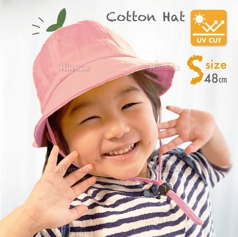 ハット 赤ちゃん用 帽子 夏 子供 子ども 赤ちゃん ベビー 男の子 女の子 あごひも付き 散歩 外遊び 公園 Sサイズ 48cm ピンク