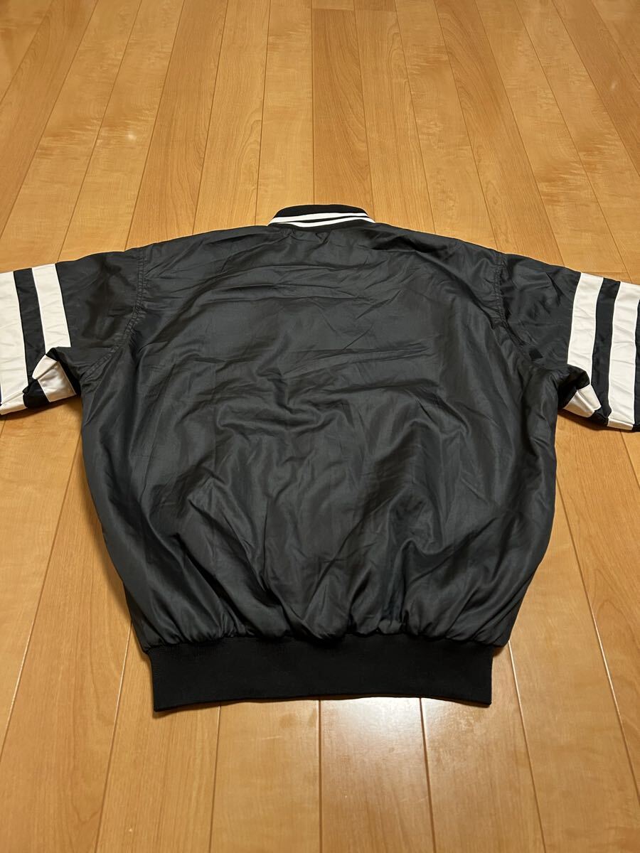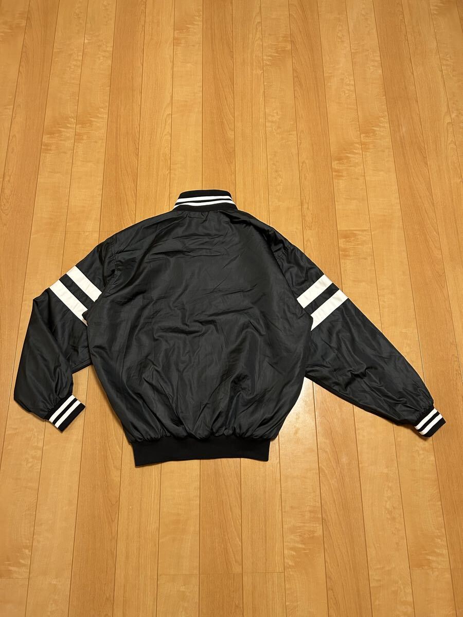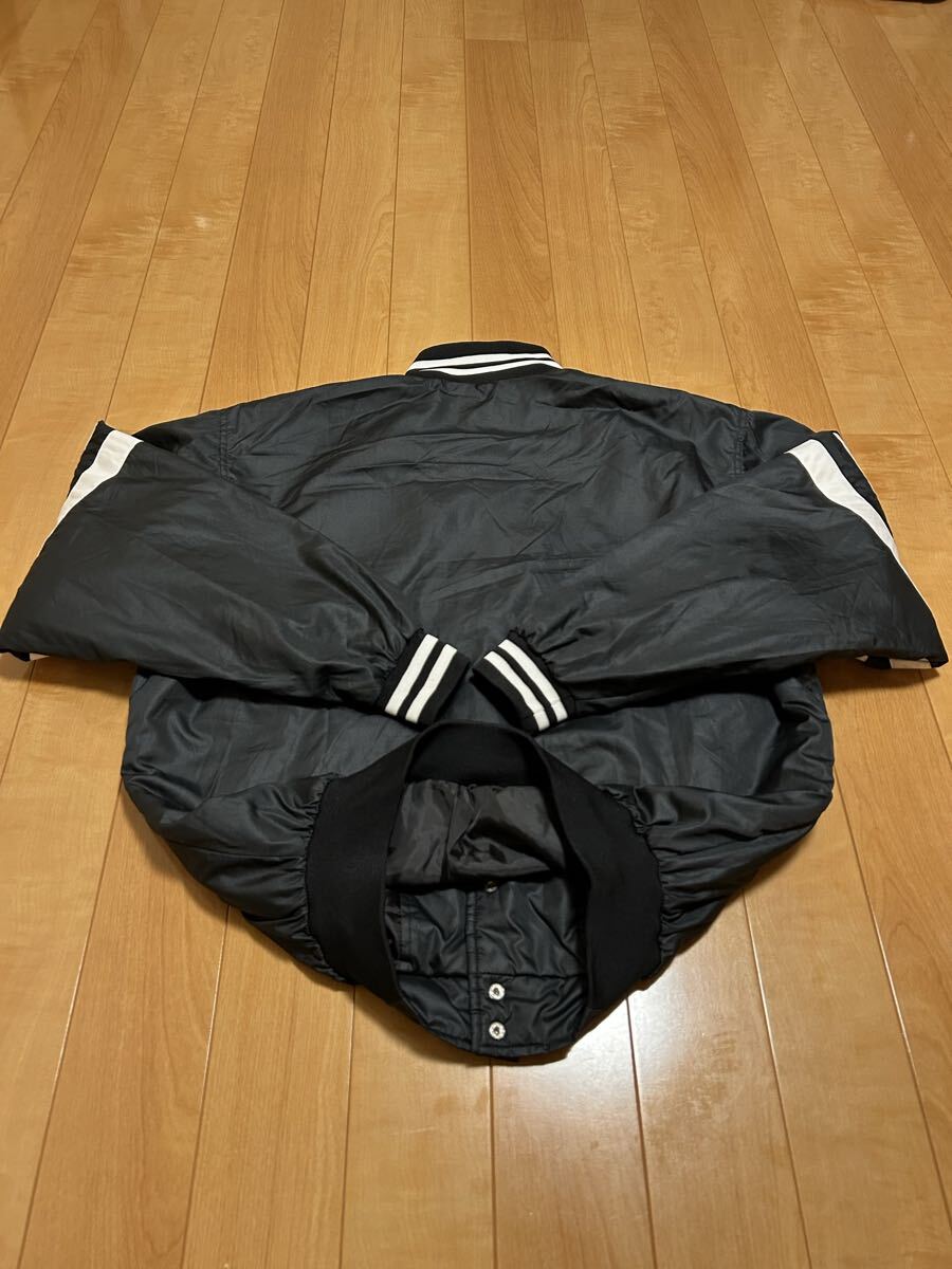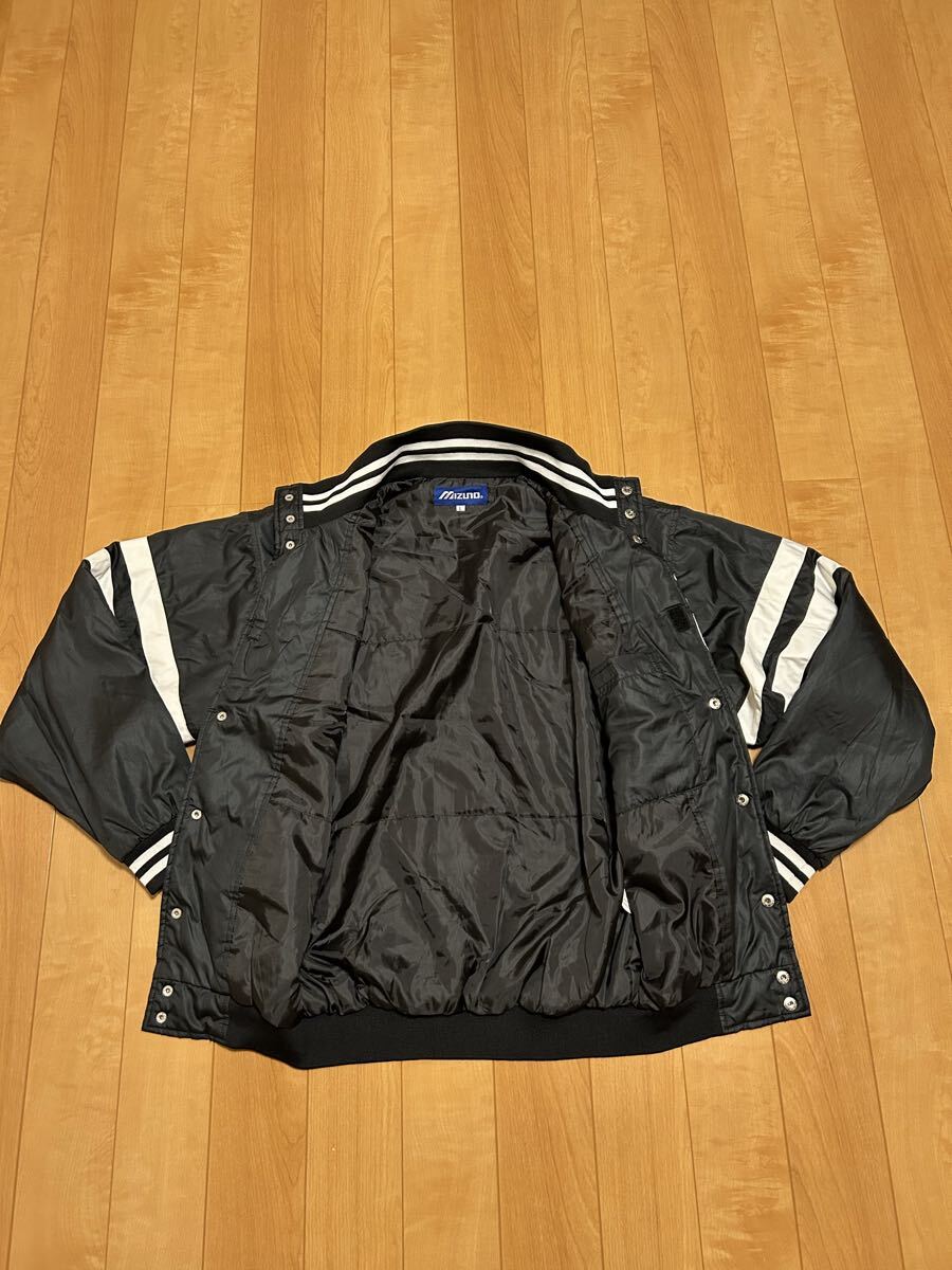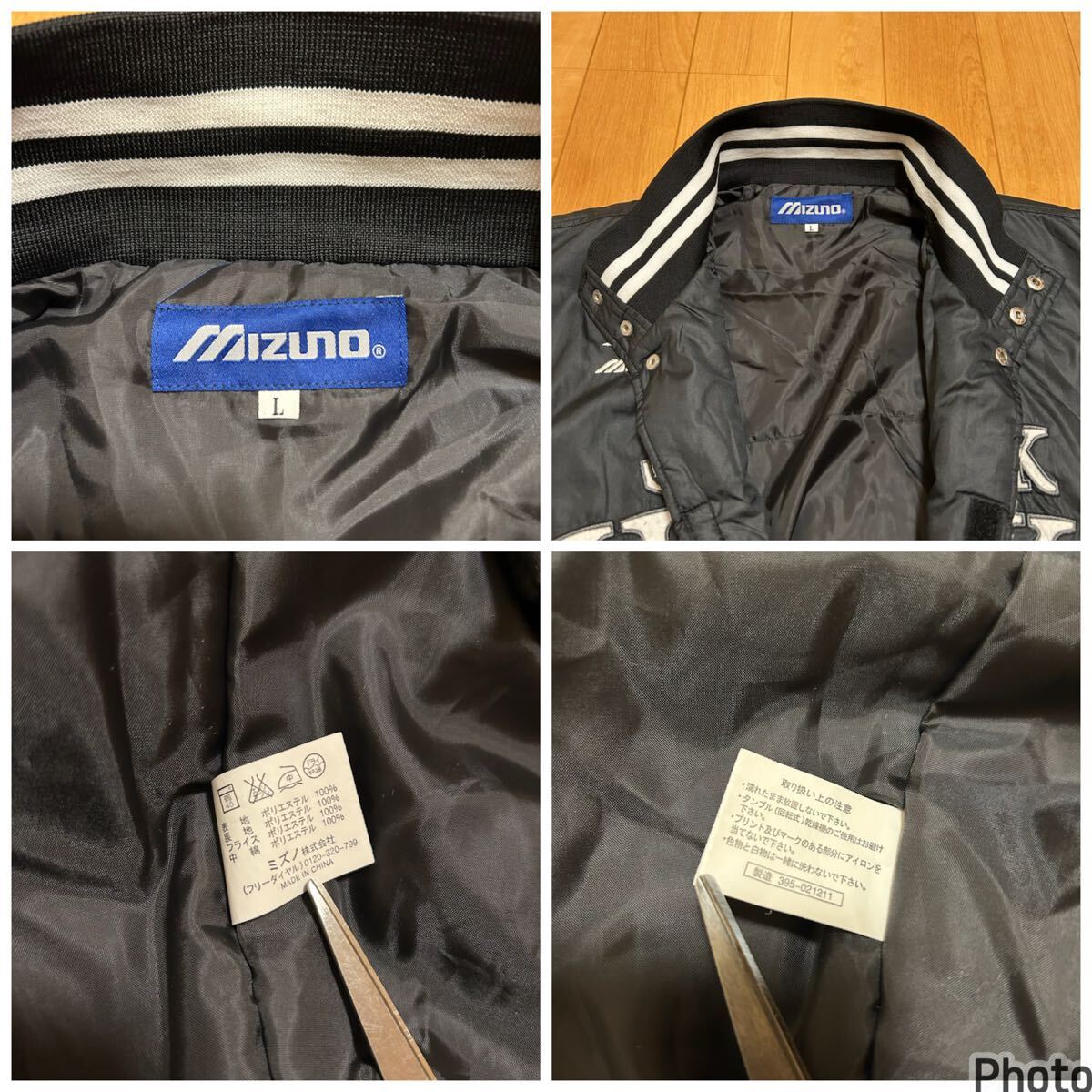 良品☆ミズノ製/福岡ソフトバンクホークス サイズL大き目 肉厚中綿入.ナイロンスタジャン ロゴ刺繍ワッペン 黒 グランドコート