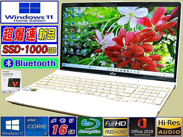 【第8世代】の【intel i7-8565U】を搭載、そして【ストレージ】には爆速SSDを搭載した【プレミアムホワイト】の清楚な白いカラーでLIFEBOOK AHシリーズの【上位機種】富士通ノートパソコンです。 Blu-rayデスク搭載、そして人気の狭額縁の広視野角の15.6インチFHD液晶で明るく鮮明に表示します、音質は、ハイレゾ再生に適したオンキヨー社製スピーカーで高音質なサウンドを楽しめます。また高い没入感で【写真】や【動画観賞】等が最適に味わえます。 心地よい打鍵感でタイピングしやすいキーボードは、しっかりと打ち込める深いキーストロークと、指の力に応じてキーの重さ調整した3段階押下圧を採用、またテンキー付キーボードで数字入力が楽々です。
