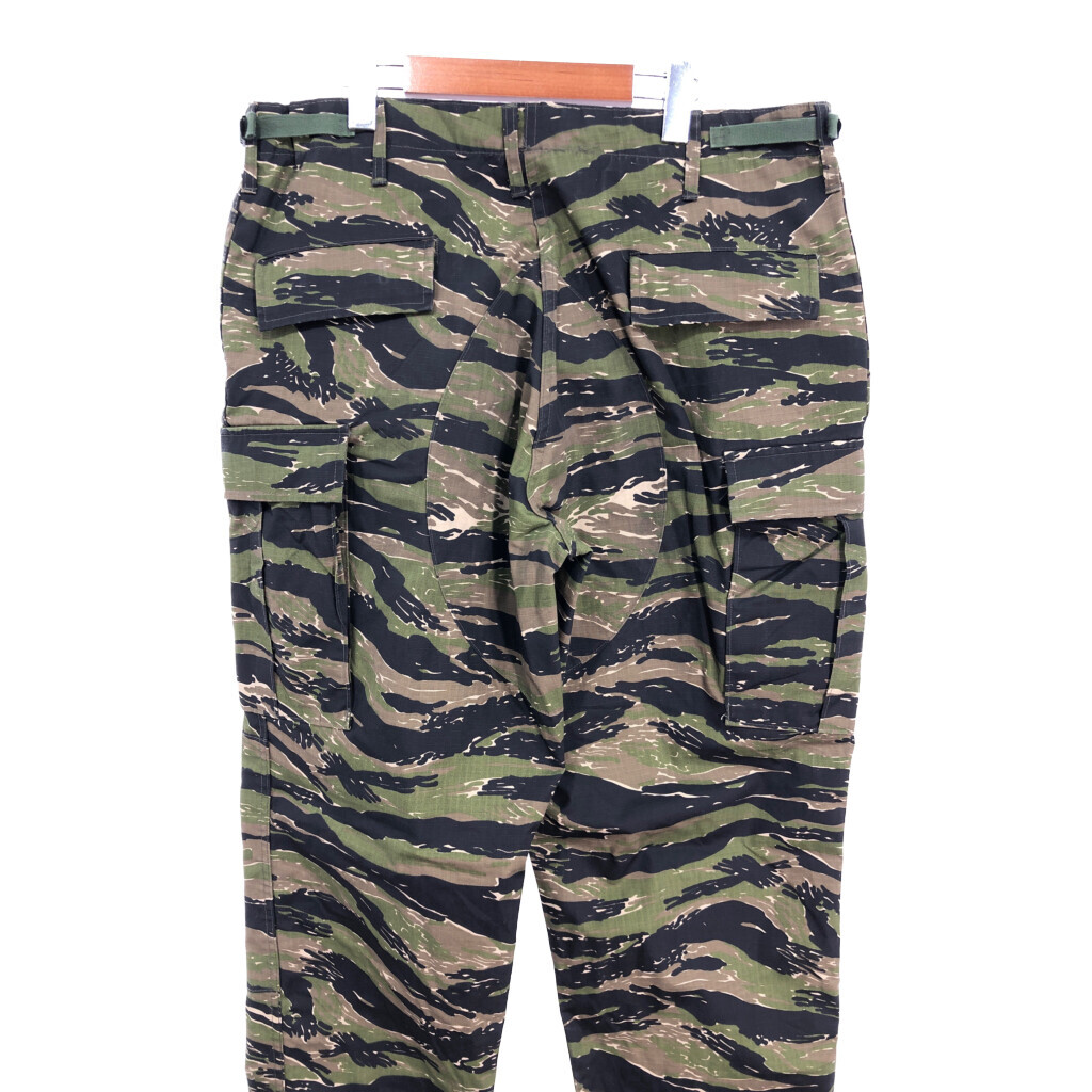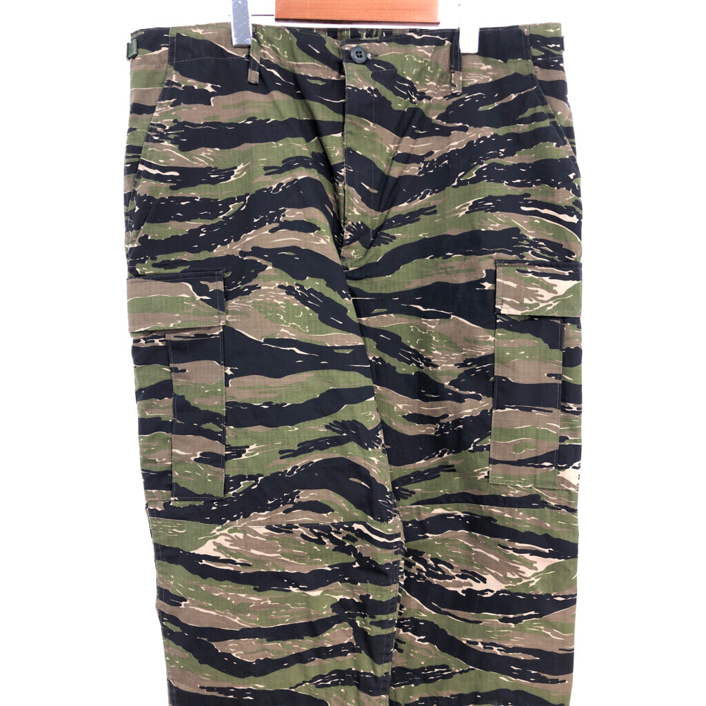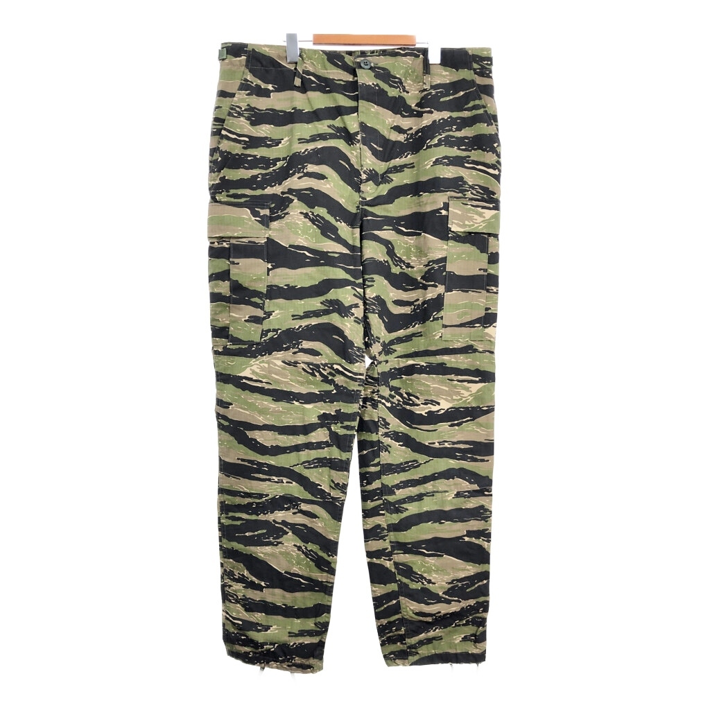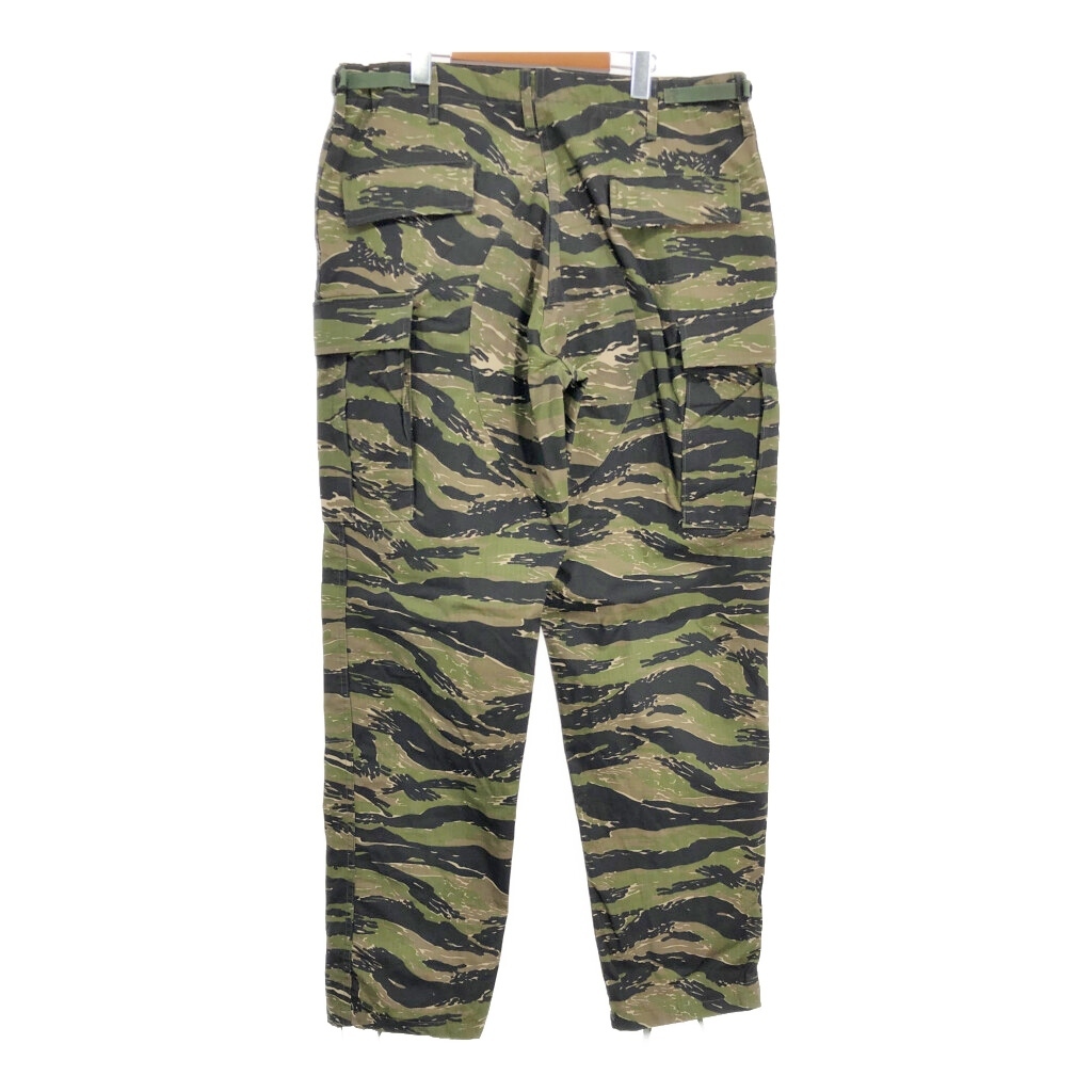| 【商品管理番号】 S8850 【サイズ】 LARGE LONG 【実寸サイズ】 ウエスト:約90cm 股上:約33cm 股下:約84cm わたり幅:約38cm 裾幅:約21cm 【主な素材】 表地 : コットン 【色】 ブラック 【仕様】 裾ドローコード、アジャスター、リップストップ ミリタリー フィールドパンツ タイガーストライプ 【状態】 | |||