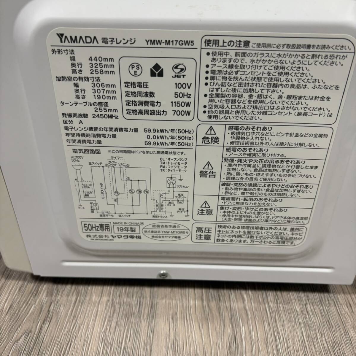 ヤマダ 電子レンジ 50Hz専用 YMW-M17GW5 2019年製