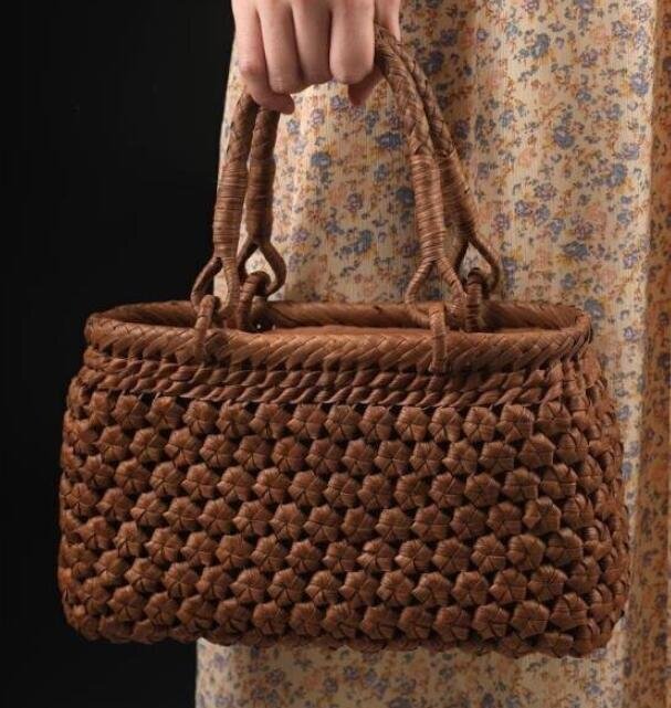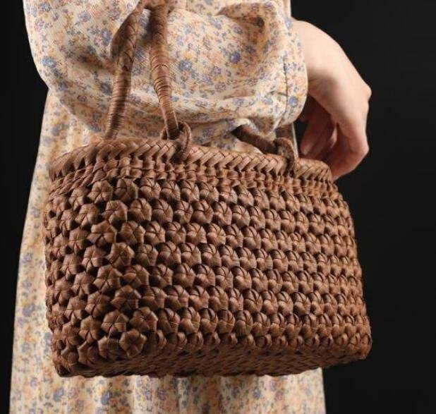 り良品 野山葡萄藤包かごバッグ 手編み山葡萄籠バッグ バスケット籐かご ハンドバック