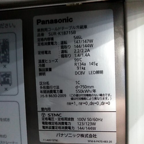 【業界最長1年保証】冷蔵コールドテーブル パナソニック(Panasonic) SUR-K1871SB 業務用 中古/送料別途見積/未使用品