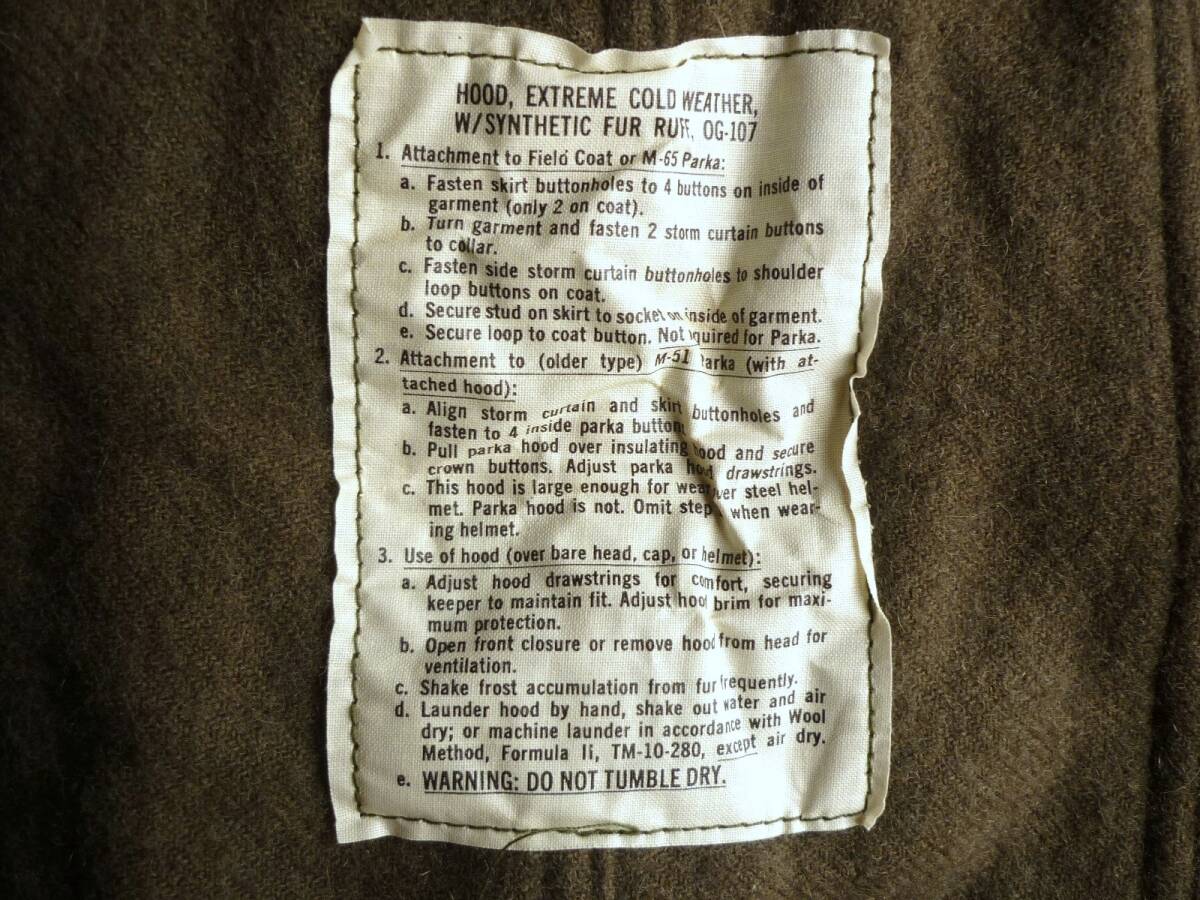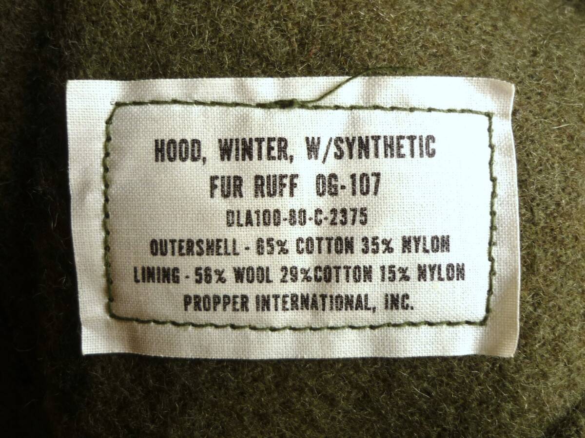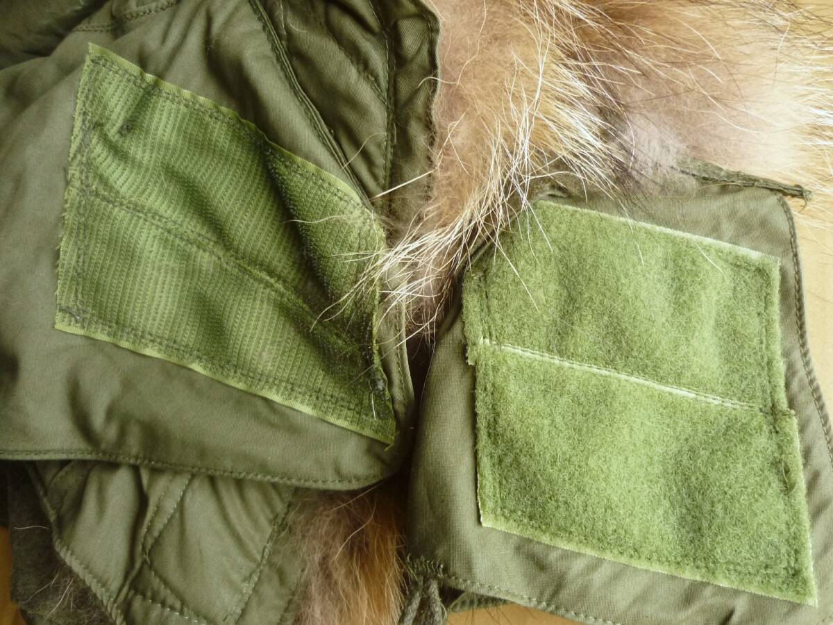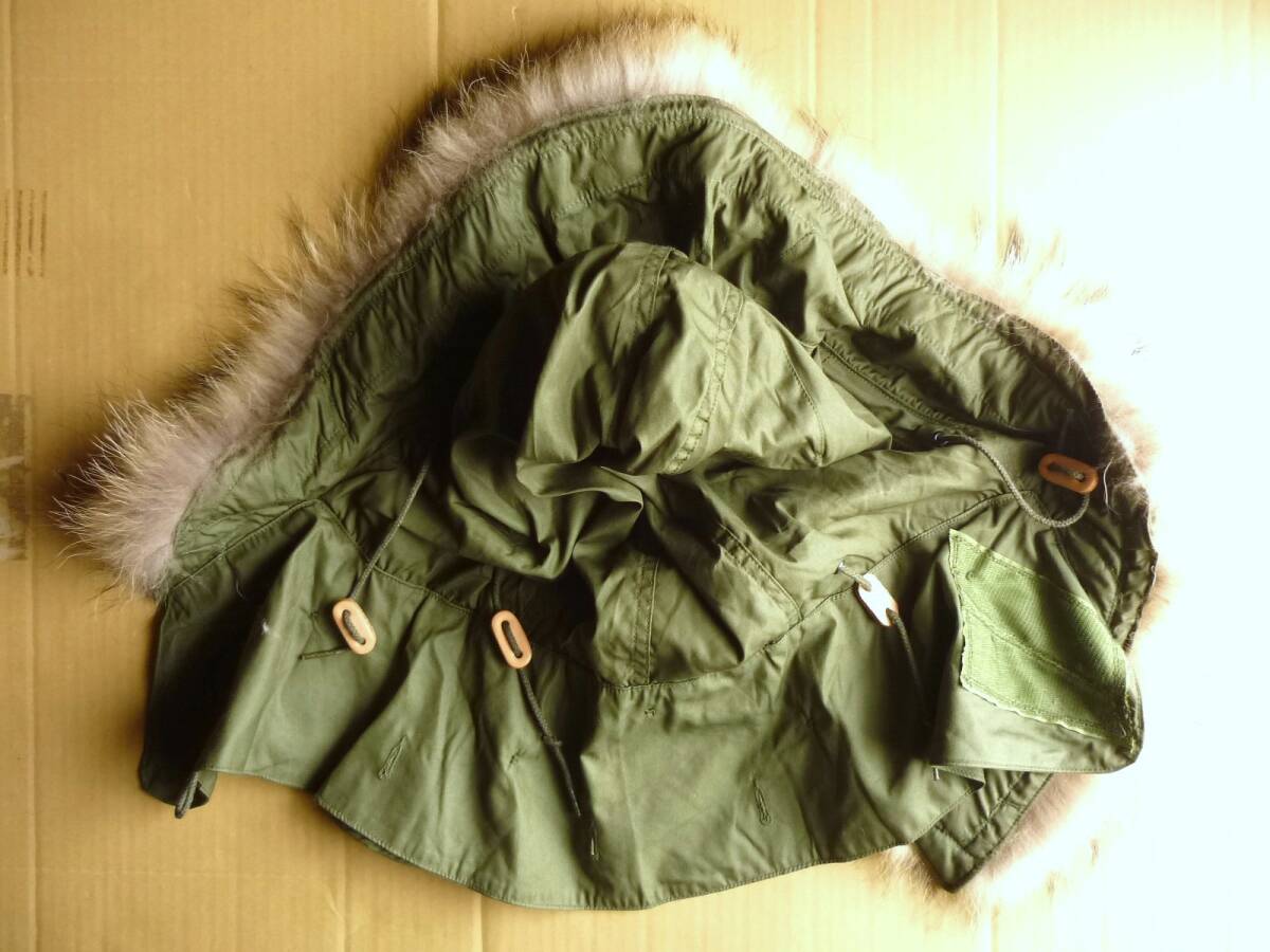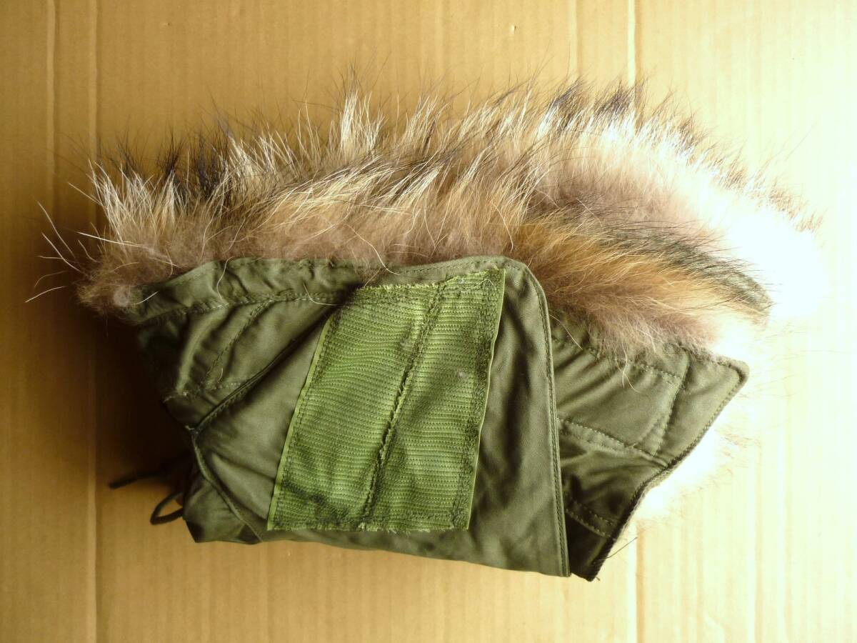 アメリカのミリタリー専門店による企画品で80年代の実物フードの白いシンセティックファーをリアルファーに交換してあり、実物のコヨーテファーフードと比べても遜色の無いくらいに良く出来ています。