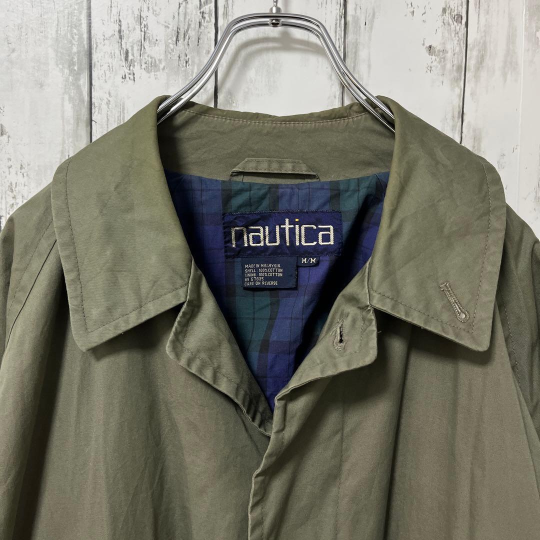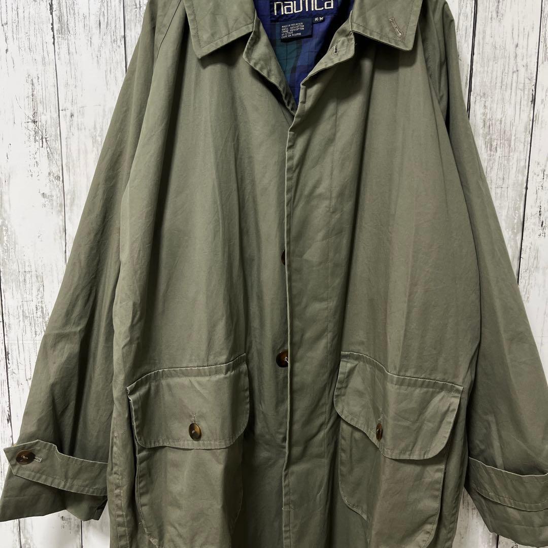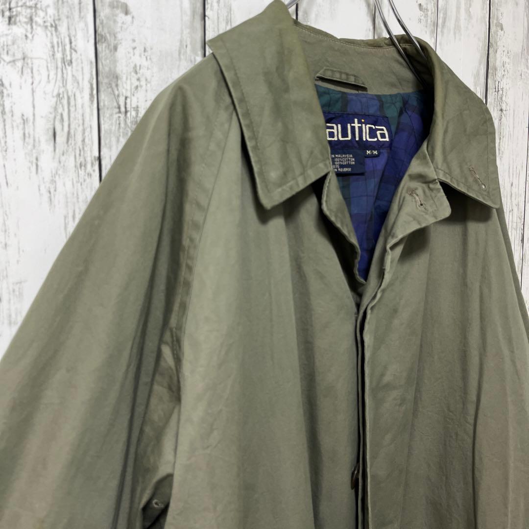 オリーブグリーンのNautica製トレンチコート、Mサイズ。