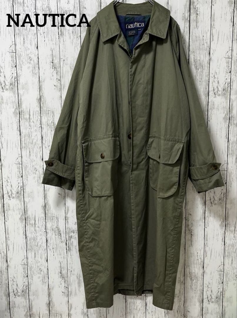 C2741 NAUTICA ノーティカ トレンチコート Mサイズ オリーブグリーン ステンカラーコート コットン ロングコート シンプル