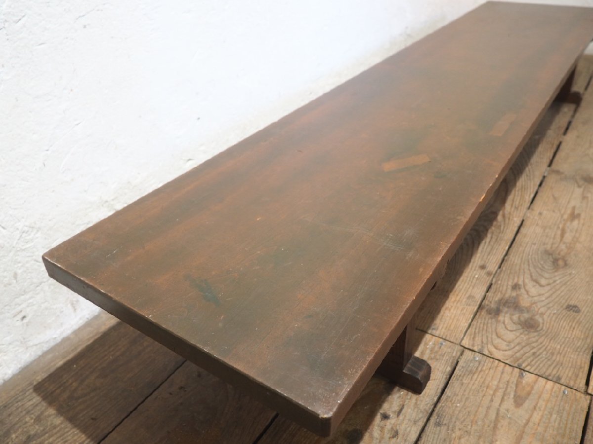 タY1062◆天板W179cm×D39,5cm◆アンティーク◆一枚板の大きい古い木製長テーブル◆長机 ローテーブル 裁板 陳列台 展示台 レトロL笹4
