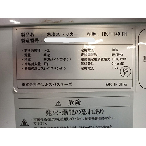 冷凍ストッカー テンポスオリジナル TBCF-140-RH 業務用 中古/送料別途見積
