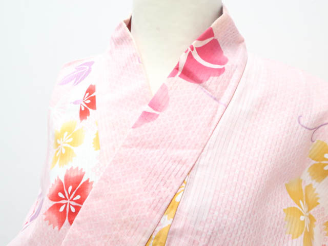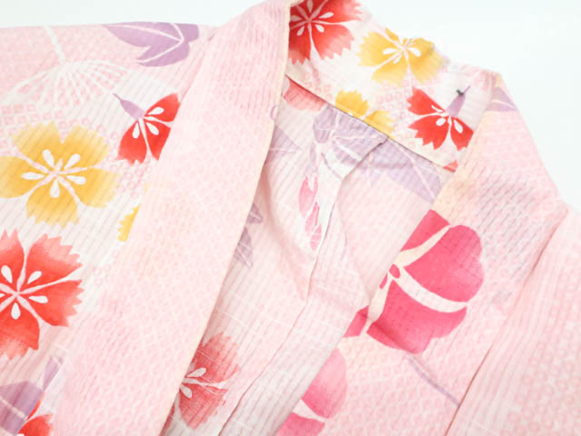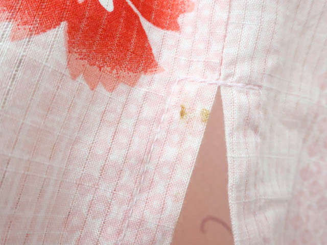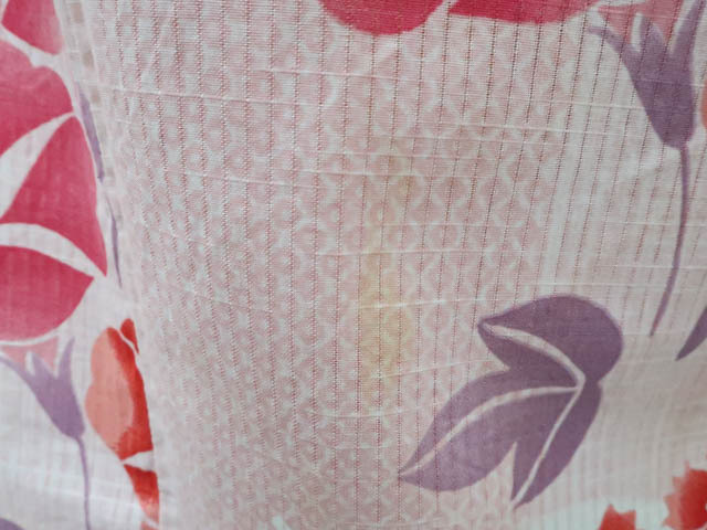 リサイクル商品のため、全体所々にしみ汚れがございますが着用可能なお品です。 地色はピンクです。 1枚目の画像が近いお色かと思われます。 素材は綿です。 |