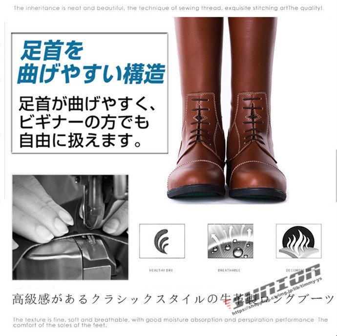 乗馬用品 本革 乗馬ブーツ 牛革 ブーツ 長靴 ロングブーツブラック 馬具タウンユースブーツ 乗馬用 乗馬靴 男女兼用ジュニア
