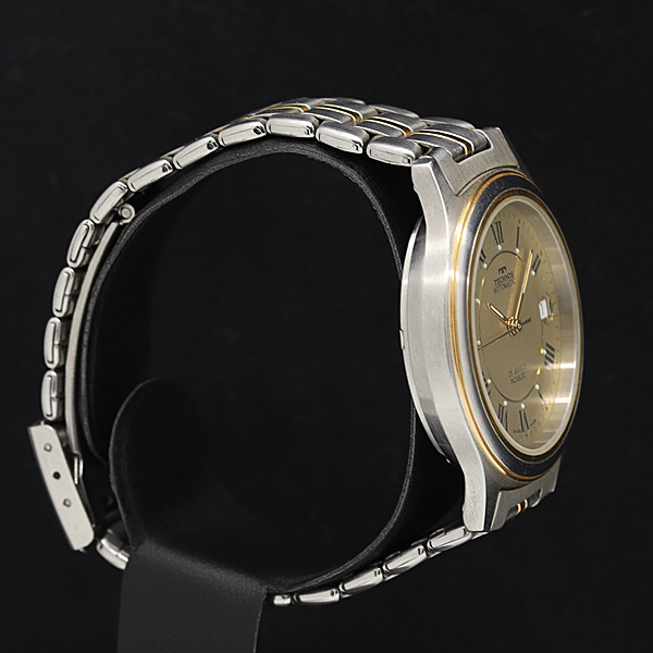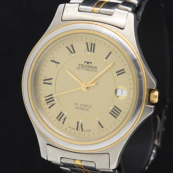 1円 稼働 テクノス 80025 AT/自動巻 ゴールド文字盤 メンズ腕時計 0583000 11ERT IGR