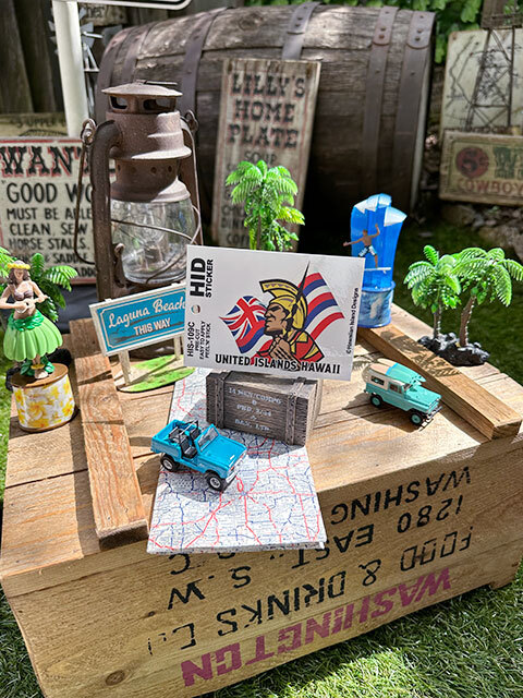 バックにはハワイ通なら当然知ってるハワイ州旗とのコンビネーションで最強タッグがここに完成です。