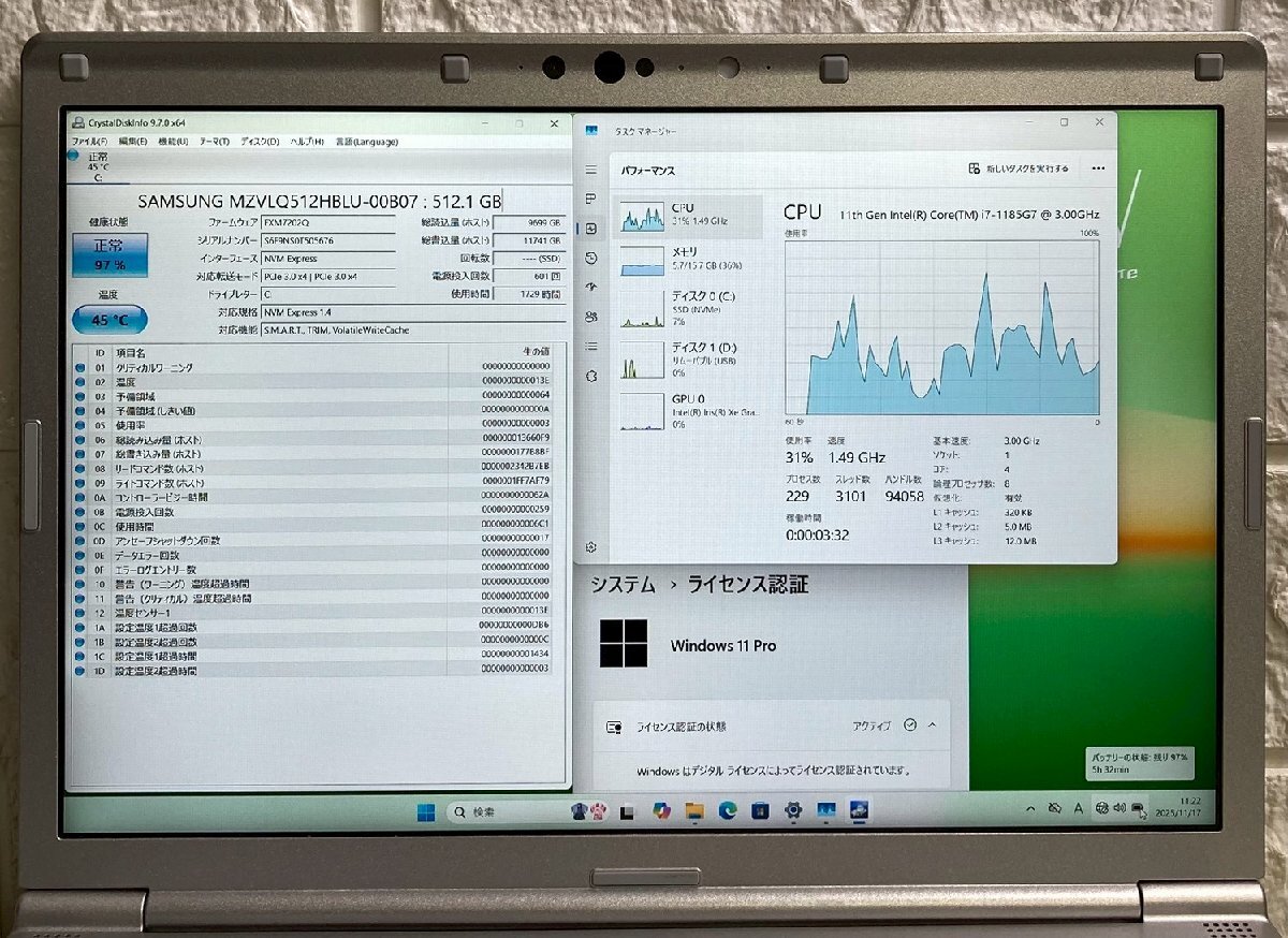 | ライセンス確認 | 〇 | CrystalDiskinfo | 〇 |