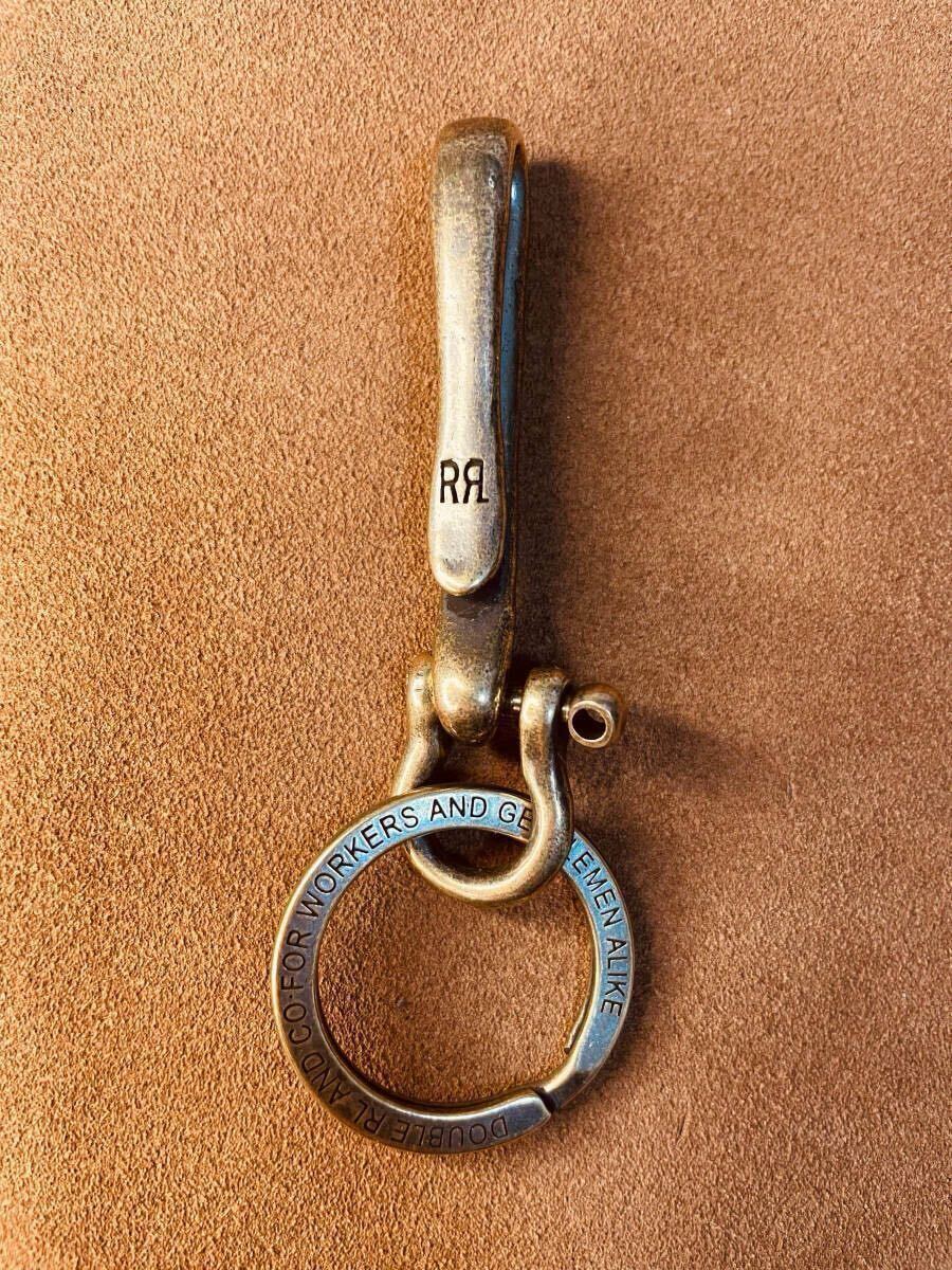 RRL キーフック キーホルダー ブラス 真鍮【素材】真鍮【サイズ】全体の長さ 約7.2㎝リングの径 約3.3㎝アメリカ雑貨や古着、ヴィンテージがお好きな方は気に入っていただけると思います!フック、二重リング共に真鍮無垢で作られた釣り針型のキーリングです☆真鍮無垢は使い込むと色が濃くなり、レトロ感が増しエージングが楽しめます♪ベルトループに引っ掛けてお使い頂けます。リングにも文字が刻まれておます。商品の特性上、真鍮の色、文字の黒ずみなど個々に異なります事をご了承ください。【サイズ】商品画像中の定規寸法と一緒に写った画像を参照してください。撮影角度によって若干の見え方に誤差が生じる場合がございます。【材質】真鍮 brass【注意点】海外製品のため日本製品に比べ作りが甘い場合がございます。小さなキズ、色むらなどある場合がございます。ハンドメイドですので若干の個体差がある場合や、予告なく一部仕様が変更になることがあります。(画像は使い回しです)ご理解のある方のみご購入ください。予めご了承ください。ビンテージ、アンティーク商品にご理解ある方ご検討よろしくお願いします。#ヴィンテージライン#バイカー#brass#DOUBBLE RL#ウォレットチェーン#キーチェーン#クライミー#CRIMIE#CALEE