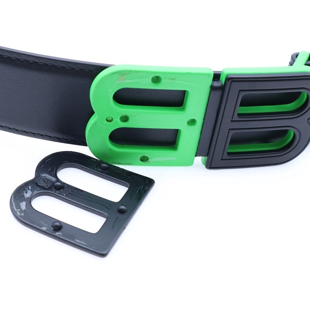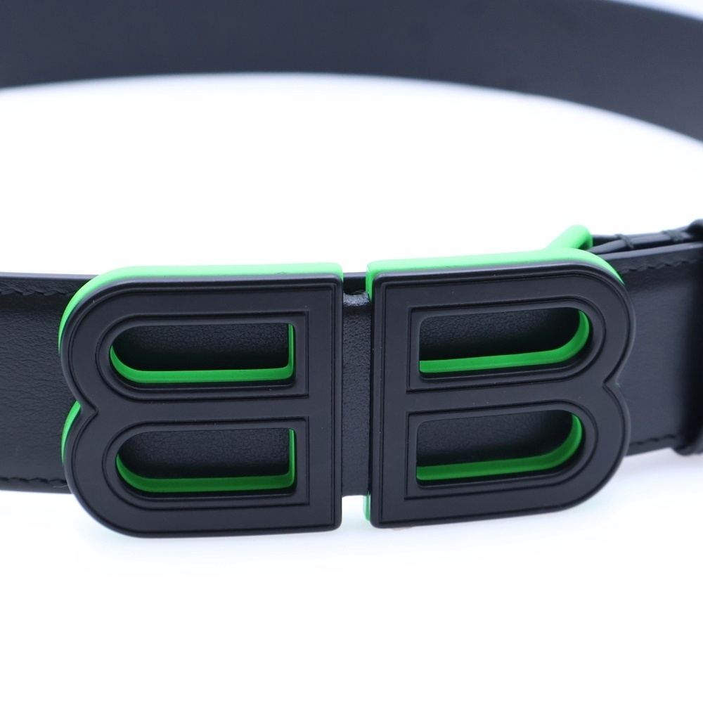 BALENCIAGA バレンシアガ BBバックル ベルト ブラック×グリーン レザー 674171