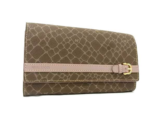 ■美品■ NINA RICCI ニナリッチ レザー ラウンドファスナー 長財布 ウォレット 札入れ 小銭入れ カード入れ グレージュ系 DK5986