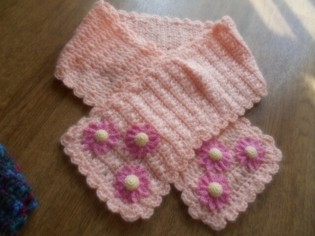 こちらの襟巻はピーチ色アクリル100%だから温かく軽い