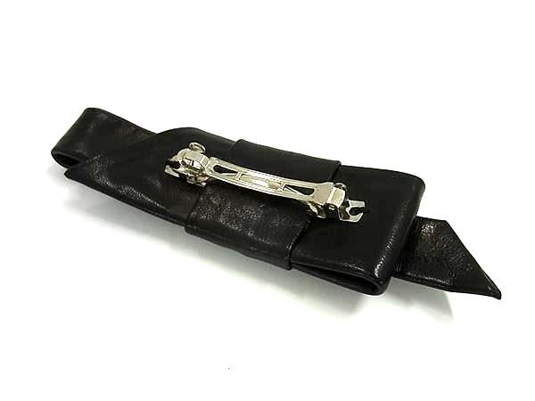 PRADA プラダ レザー ヘアクリップ 髪留め ヘアアクセサリー レディース ブラック系 DK7597
