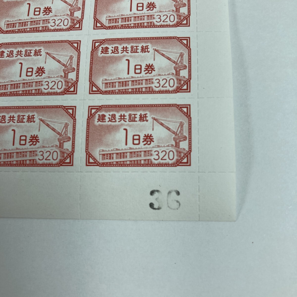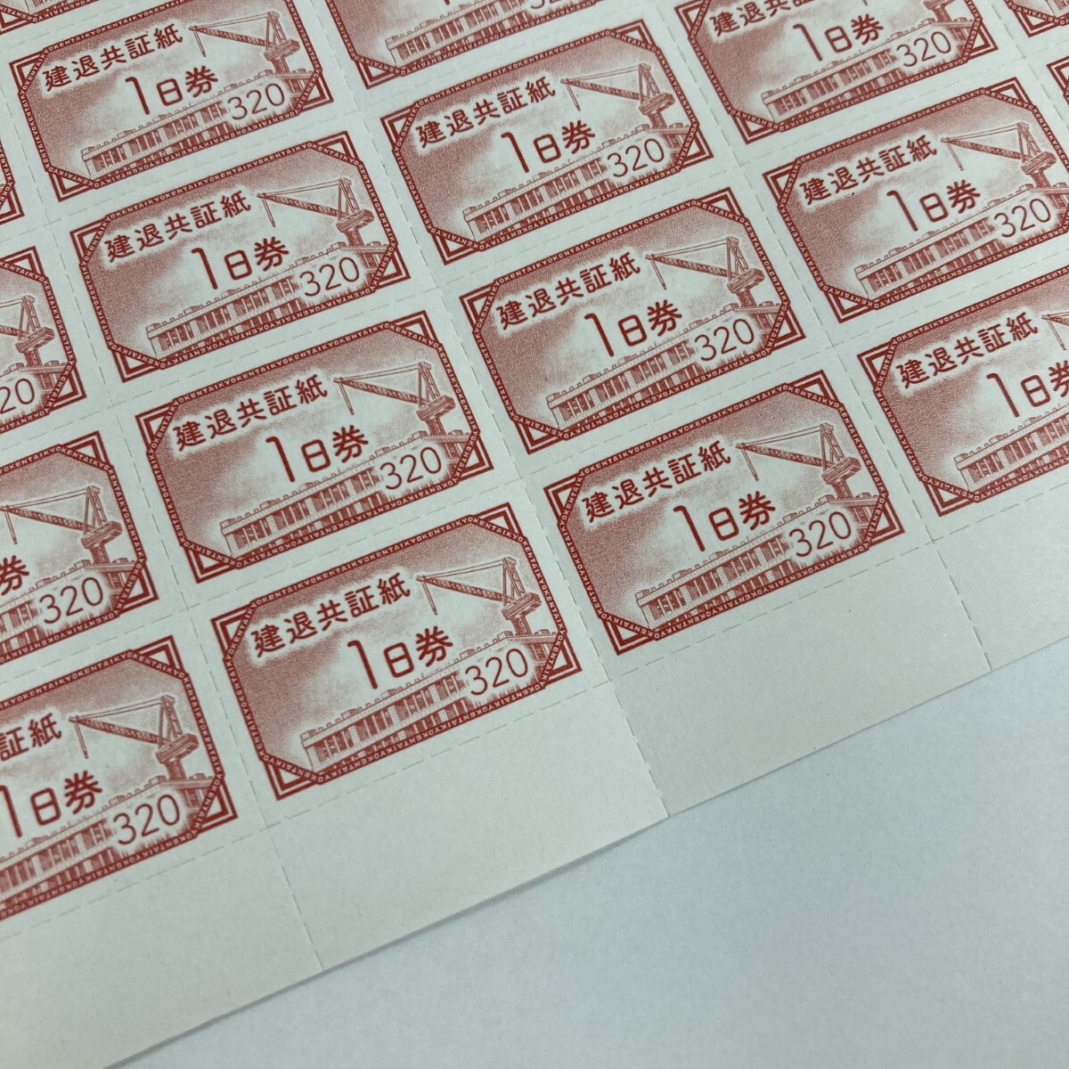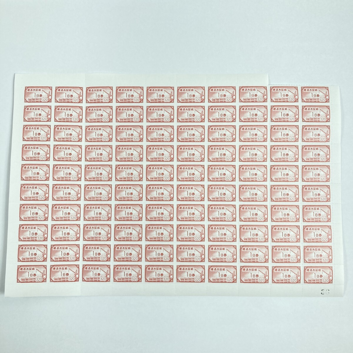 【商品名】中古 建退共証紙 1日券 320円 1シート 100枚 額面32.000円 未使用に近い