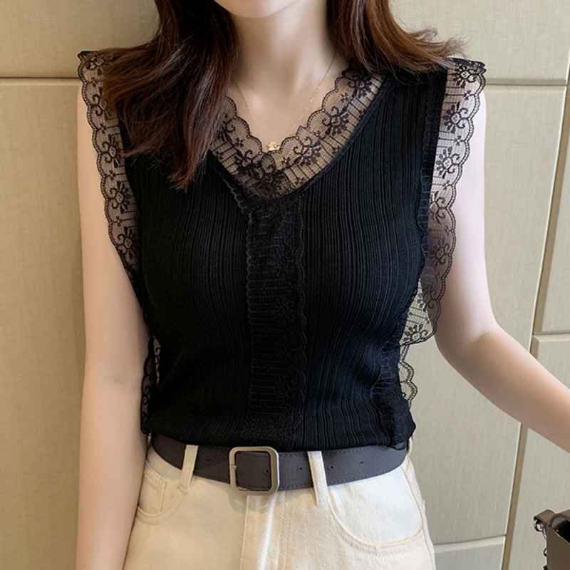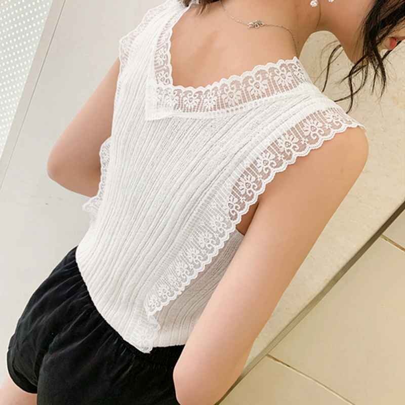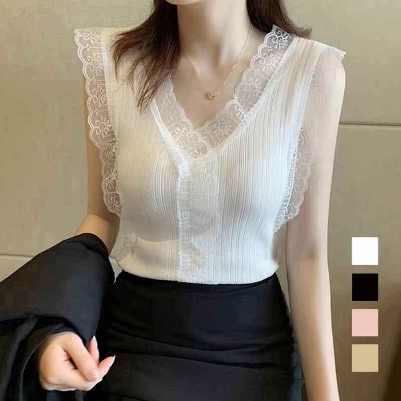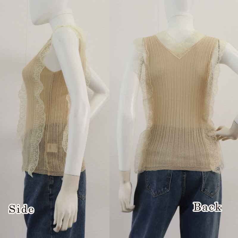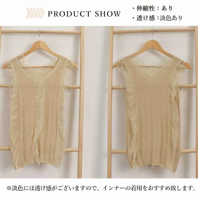 カーディガンのインナーに入れ、レースを覗かせる着こなしもおすすめです◎