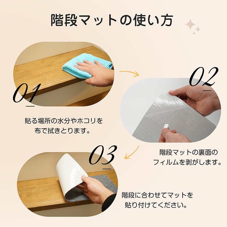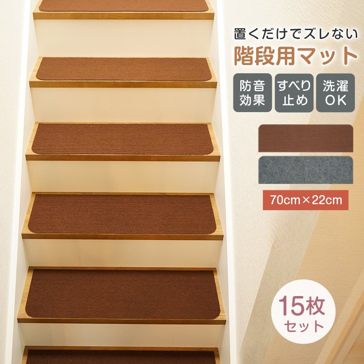 1円 階段マット 15枚セット 70cm×22cm 階段 滑り止め 防音 厚手 負担軽減 すべり止め 赤ちゃん 犬用 猫用 ペット 転倒防止 in023-m