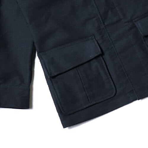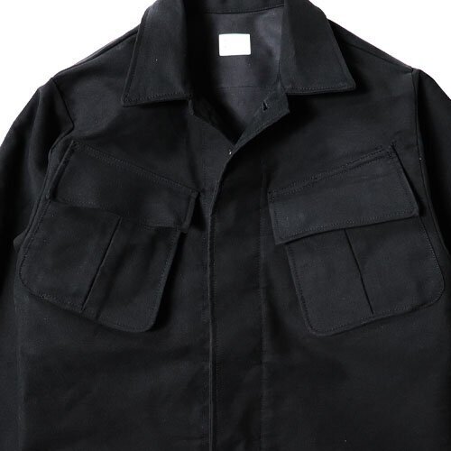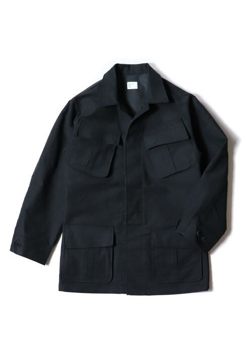 アメリカ軍の名作ジャケットであるジャングルファティーグジャケットのデザインはそのままに、本来のコットン生地からモールスキン生地へ変更して仕上げました。 モールスキンならではの耐久性や防風性、保温性に加え、ブラックカラーにより上品さもプラス致しました。 従来のコットン生地には無い、モールスキンならではの色落ち、経年変化も楽しんで頂けます。 写真は流用です。 サイズ L ( 身幅55cm/肩幅44cm/着丈77cm/袖丈58cm ) XL ( 身幅60cm/肩幅46cm/着丈80cm/袖丈62cm ) ●素材:コットン ●状態:新品 沖縄離島を除く全国元払い500円でお送りいたします。落札価格にプラスでお願いします。