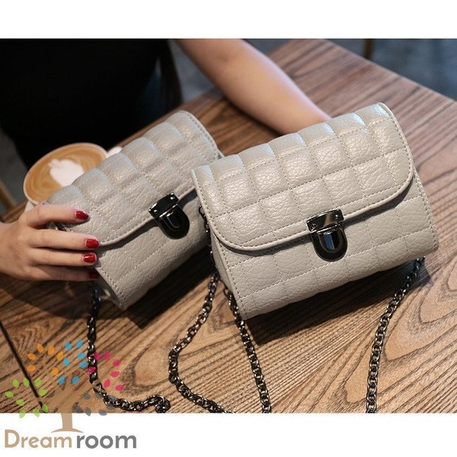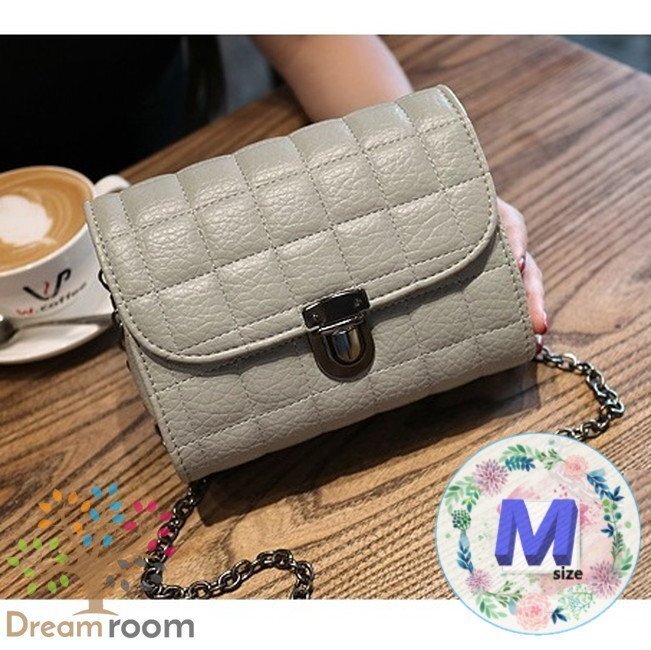 1スタ☆classic キルティングレザー チェーンBAG 【D型 グレー M】クラッチバッグ 革 ハンドバッグ 海外セレブ K-067-2