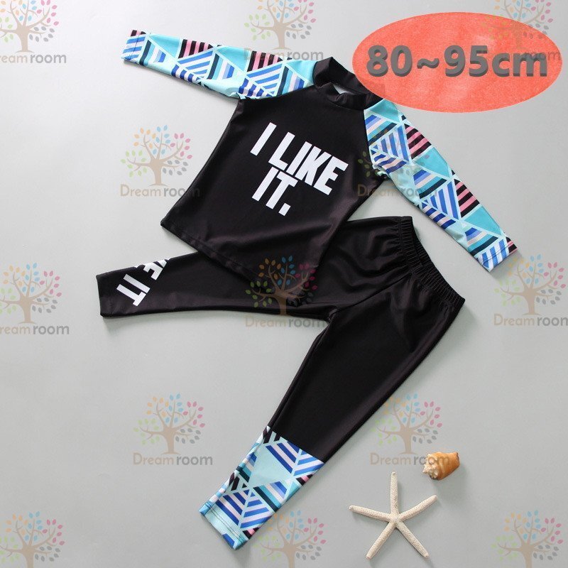 1スタ☆ラッシュガード セパレート水着 上下セットアップ ブルー【M】80-95cm 子供服 男女 レギンス 長袖 ズボン 日よけ ビキニ 海 プール swi-111
