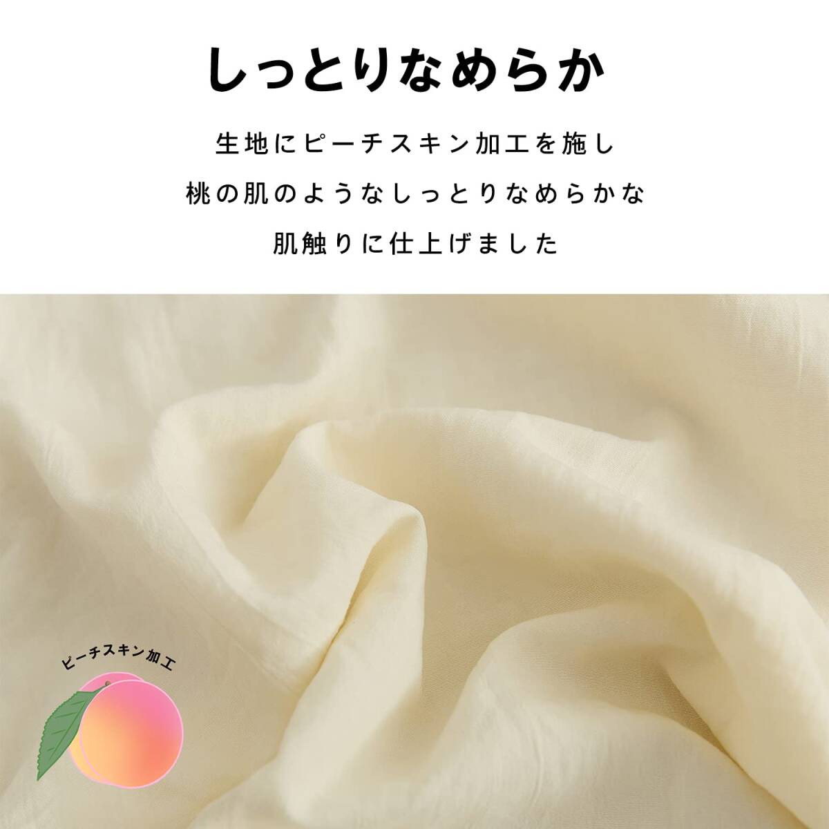 ・【肌触り】生地にピーチスキン加工を施しました。きめ細やかな起毛により柔らかくなめらかな風合いはまるで桃の肌に包まれるような肌触りをお楽しみいただけます。また、水洗い加工で自然なやわらかさに仕上げました。