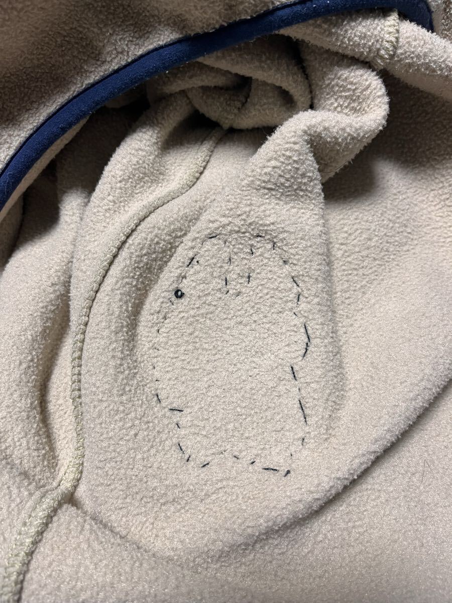 胸元にスレがついてしまったのでハーレーダビットソンのワッペンで隠しています。