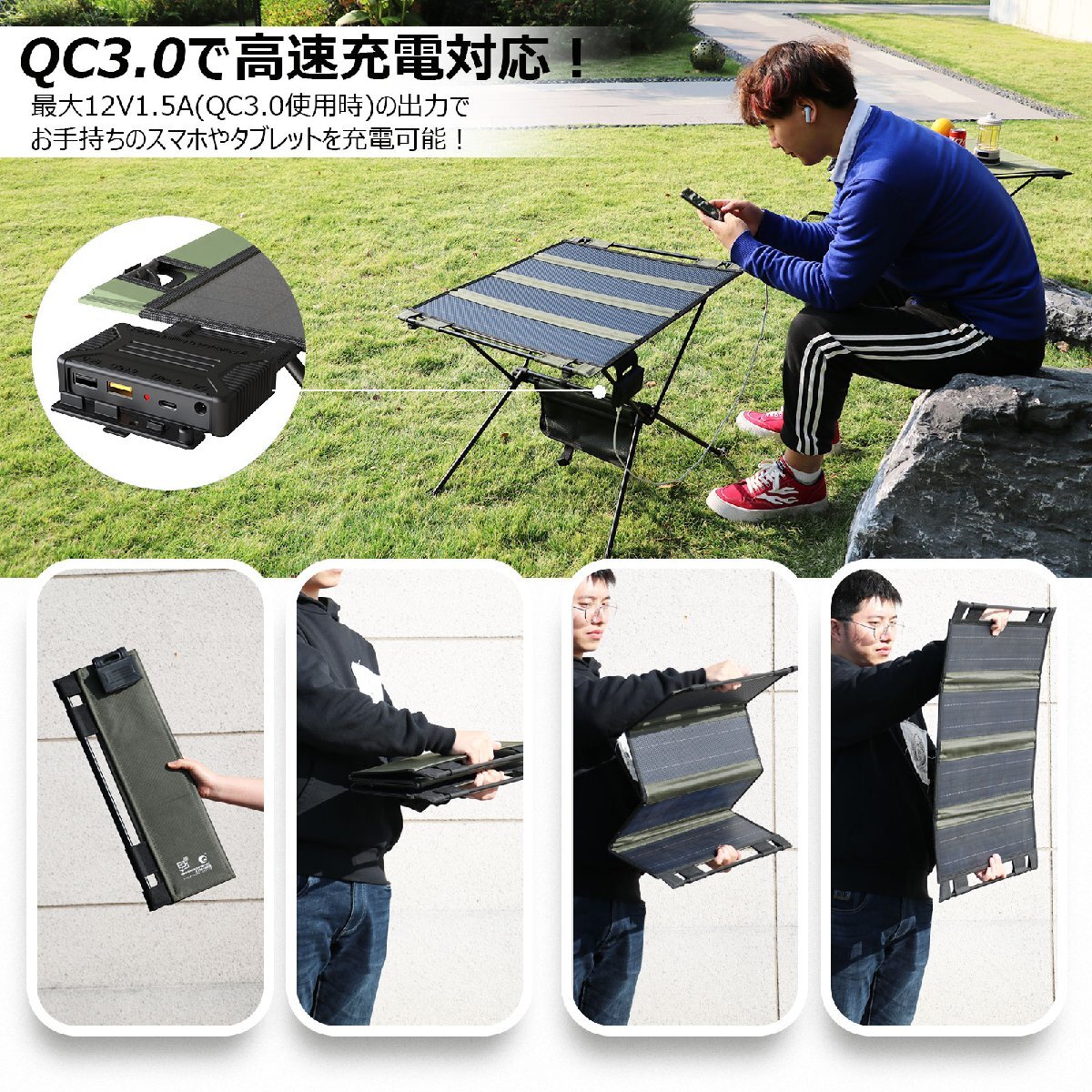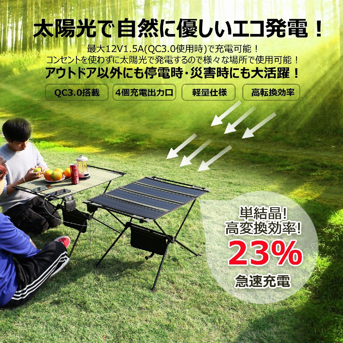 ★オススメポイント★ ◆太陽光で発電!自然に優しい究極のエコ! 停電・災害時には、ライト・スマホがあっても電源がない・・・そんな時にも太陽光で発電! ポータブル電源とセットなら、更に大きな安心と利便性に繋がります。 ◆軽量で持ち運びやすい折り畳み式 折り畳むと付属の持ち手付きバッグへ収納が可能です。一人で持ち運びも設置も簡単に扱う事ができます。 ◆単結晶シリコン、転換効率23%を実現! ◆QC3.0対応USBポート*1個・USBポート*1個・Type-Cポート*1個・DCポート*1個を搭載。緊急時に電源の心配無し! ◆便利なコンパス・温度計付き!