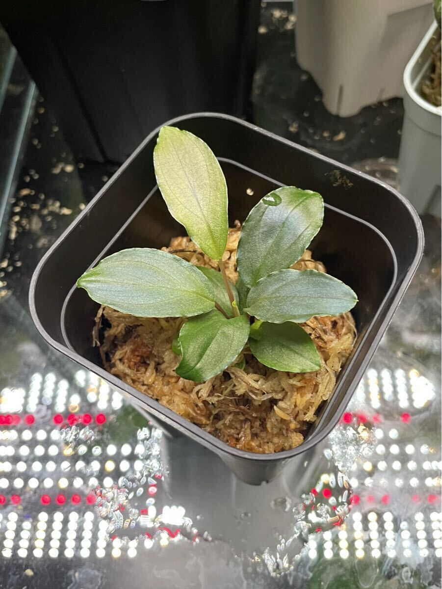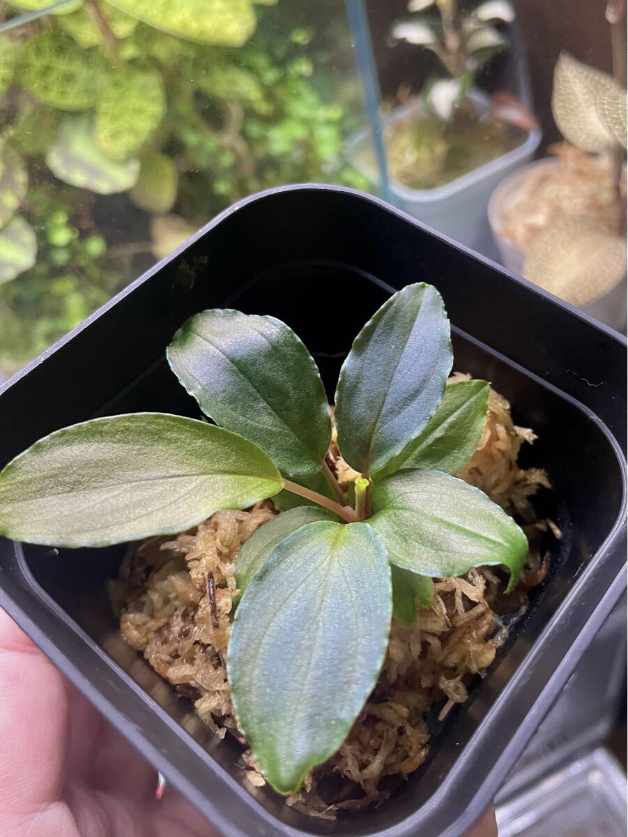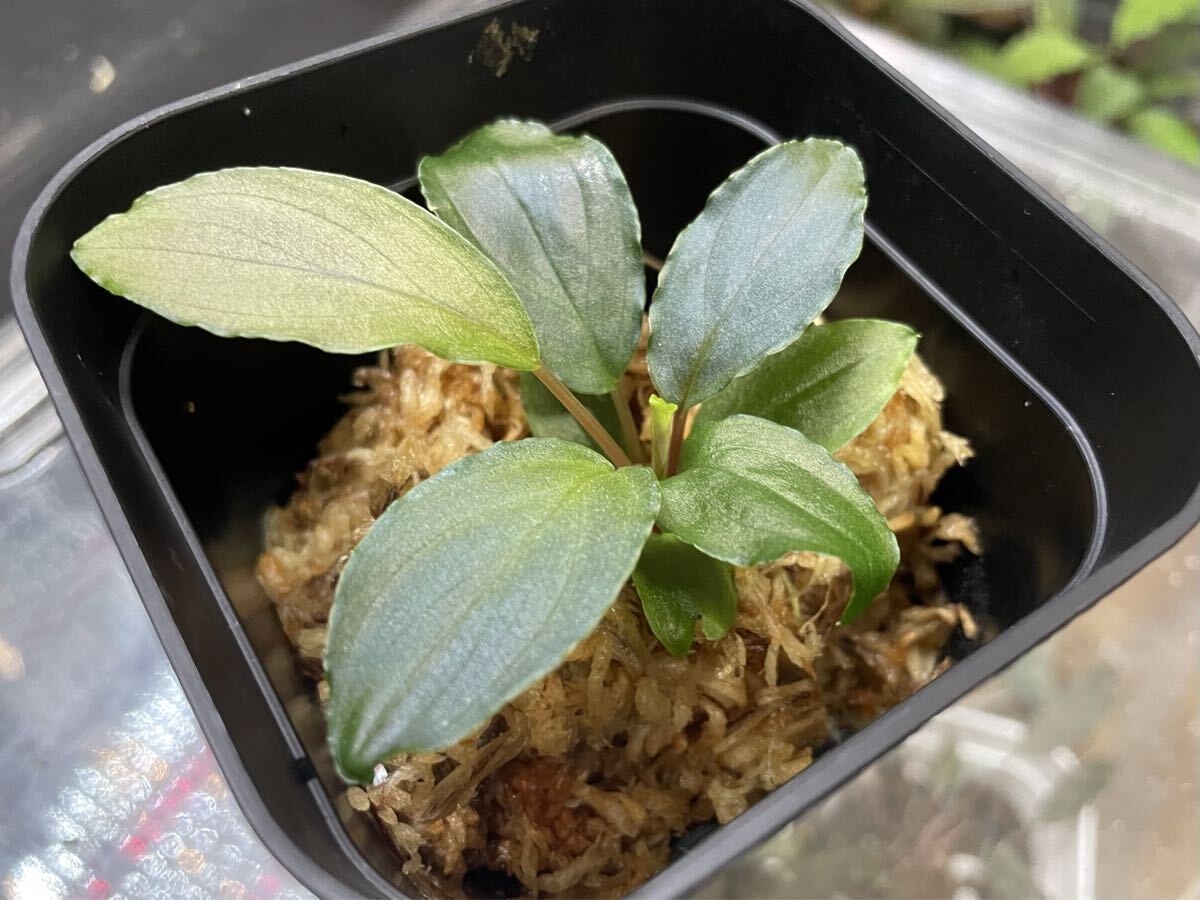 ユークレースの綺麗な青、PNのナロー系の葉も展開してきました。写真では分かりづらいですが葉の表面にラメものっており、交配種ならではの表現になりそうです。両親の魅力的な表現を引き継ぎそうな非常に秀逸な一株かと存じます。今後の表現が増すとすれば非常にポテンシャルのある楽しみな株です。