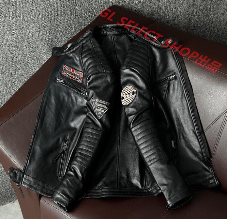 美品★肌触り最高*品質保証☆カウハイド シングル 革ジャン オートバイ/ライダース/レザー/フライトジャケット ブラック (T310)