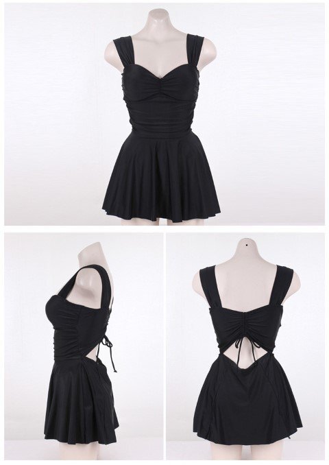 ・スカートはキュートなフレアデザイン。後ろはバック絞りリボンデザインでオシャレ。伸縮性抜群でノンストレスな肌心地です。