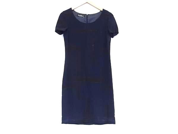 ■美品■ Salvatore Ferragamo フェラガモ 半袖 ロング ワンピース 洋服 レディース ネイビー系 DJ9855