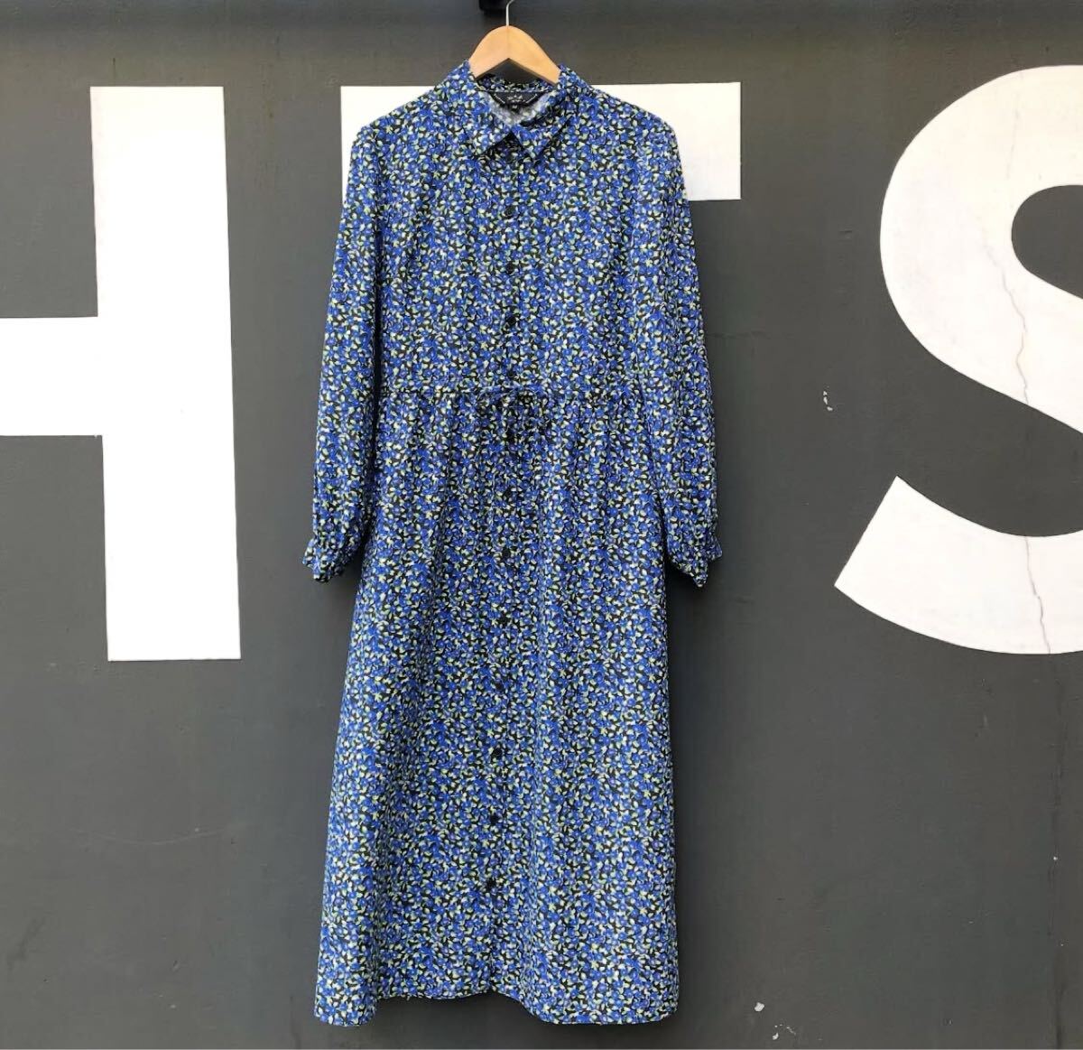 トゥービーバイアニエスベーのシャツワンピースが美品で入荷しました。ポリエステル100%の黒地に群青色の小花柄。ウエスト部分はお好みで絞れます。着丈118cmのロング丈です。この機会に是非ご検討くださいませ!