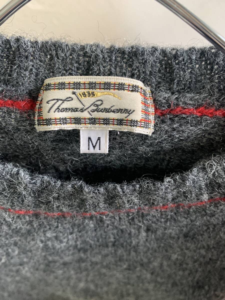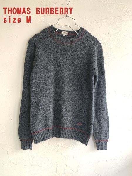 ◆N20◆THOMAS BURBERRY トーマスバーバリー ミックスグレー ニット 毛100% クルーネックセーター サイズM