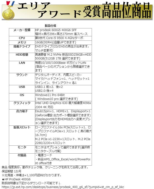 | 送 料 | ◆本州・四国・九州内各都府県は送料無料! 北海道/沖縄は送料1100円 ※ パーツ等小型商品は出荷から到着まで1~2日程度かかります。 ・PC・モニタ等の配送は、日本郵便 ゆうパック便でお届けいたします。 ・パーツ等はポスト投函便にてお送りします。 ■来訪での引取も可能です。 |