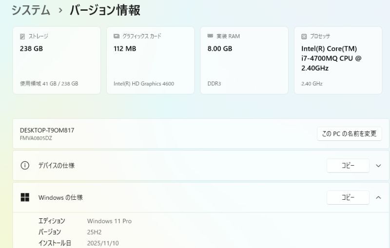 | ジャンク品の意味を理解せずに参加されている方がおられます、下記商品状態(現状)を保証するものでは無いことをご理解の上ご入札お願い致します。 ★富士通★FMV LIFEBOOK A574/K★ジャンク! CPU:インテル Core i7 4700MQ (2.4GHz) メモリ: 8GB SSD:256GB モニタ:15.6型 光学ドライブ:DVD-スーパーマルチ OS:Windows11 ・Windows11Pro ・光学ドライブ読込のみ動作確認 ・1か所ヒンジねじ受け破損(写真でご確認下さい) ・躯体・キズ・よごれ等あり ・バッテリー容量未確認 ・上記以外すべて未確認 ・付属品 なし、本体のみ ●全ての機能をチェック出来ていないためジャンク扱いです。 動作品に関しては発送前に動作確認後発送していますが到着後動かなくても補償致しません 全てノークレーム&ノーリターンです。返品・サポート・保証は致しません。 ※特に記載の無い場合、電源コード、ACアダプタ等の付属品はございません。 ●商品の性質上上記記載以外に、本体・画面・付属品等に傷及び汚れがある場合がございます。 迅速な対応を心がけています。オークション終了後、48時間以内のご連絡可能な方および4日以内に入金可能な方のみご入札下さい。 締切間近にご質問を頂きますが、営業時間内にしかご返事が出来ませんので、間に合わない場合があります、宜しくお願い致します。