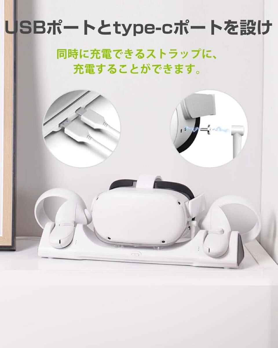置くだけで充電: 左右のコントローラーを同時に充電できるマグネット式充電ドックです。Oculus Quest2を置くだけで収納スタンドとして使え、Quest2をすっきりと収納でき、散らかりにくくなります。